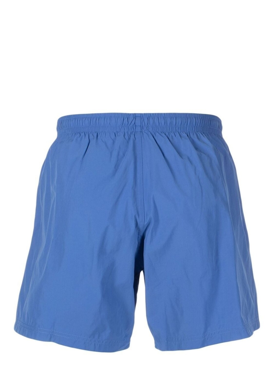 Голубой, вставки, жаккардовый логотип, прямой крой и эластичный пояс. Пожалуйста, примеряйте купальники и пляжные шорты только поверх собственного белья.