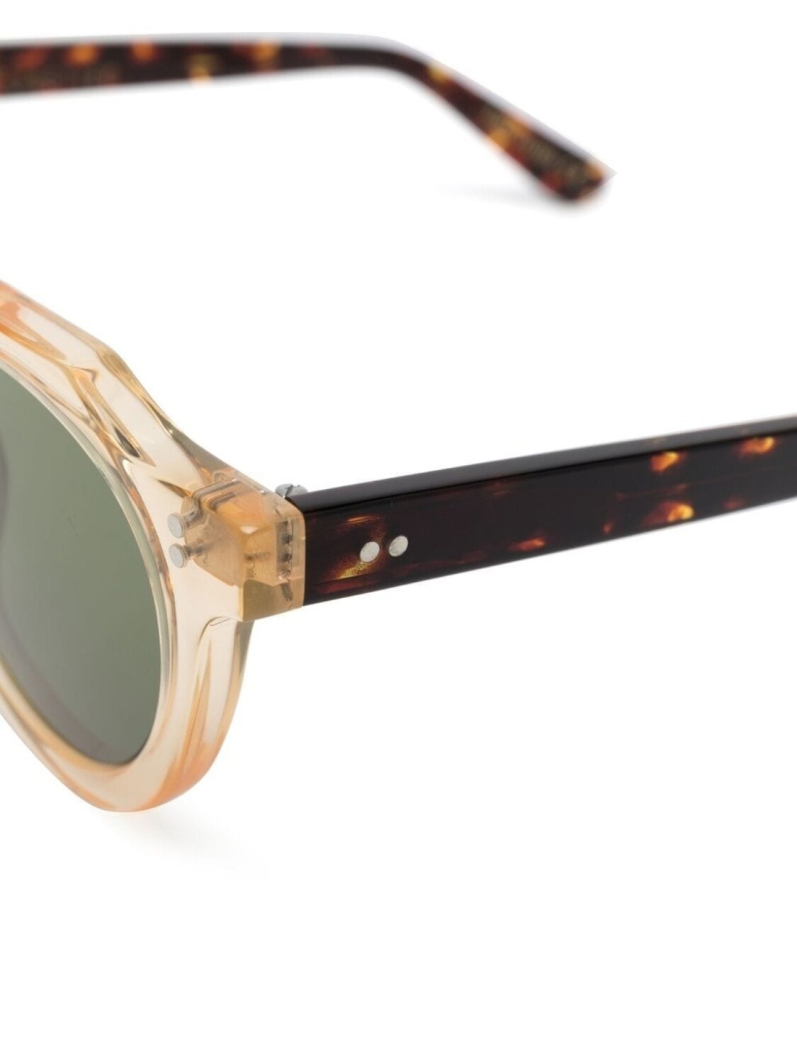 Расцветка Light Brown, круглая оправа, затемненные линзы зеленого цвета, отделка черепаховой расцветки, носоупоры, прямые дужки, дужки с закругленными концами и линзы с защитой от ультрафиолета. В комплект входит защитный чехол для очков.