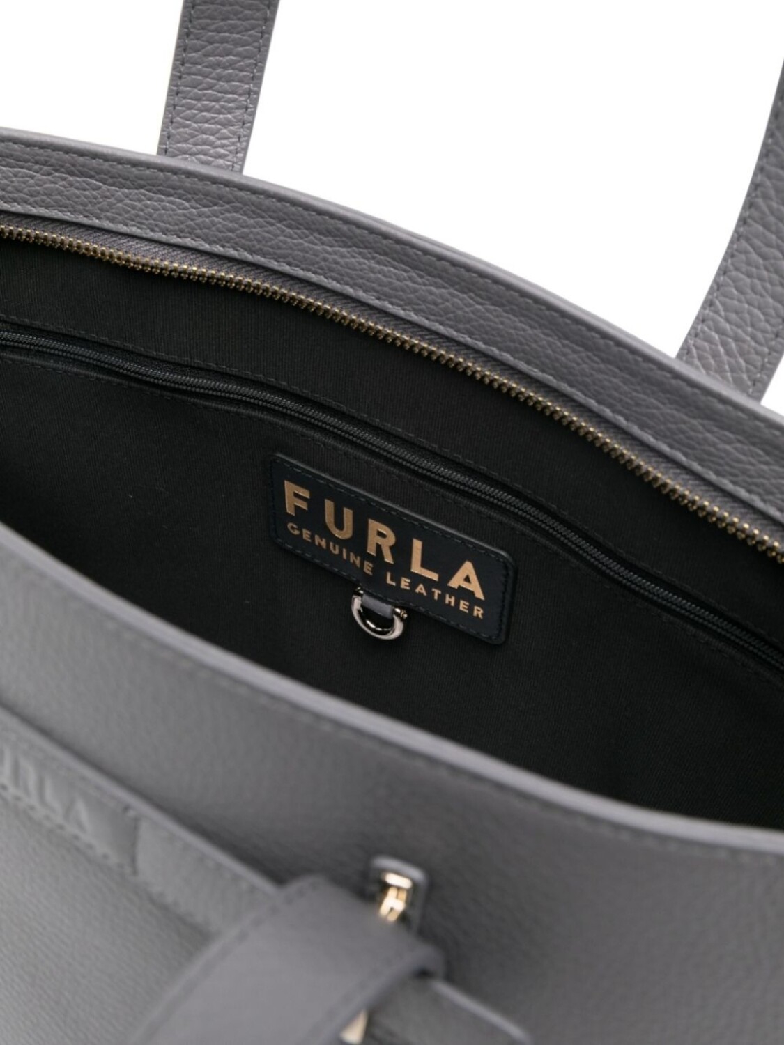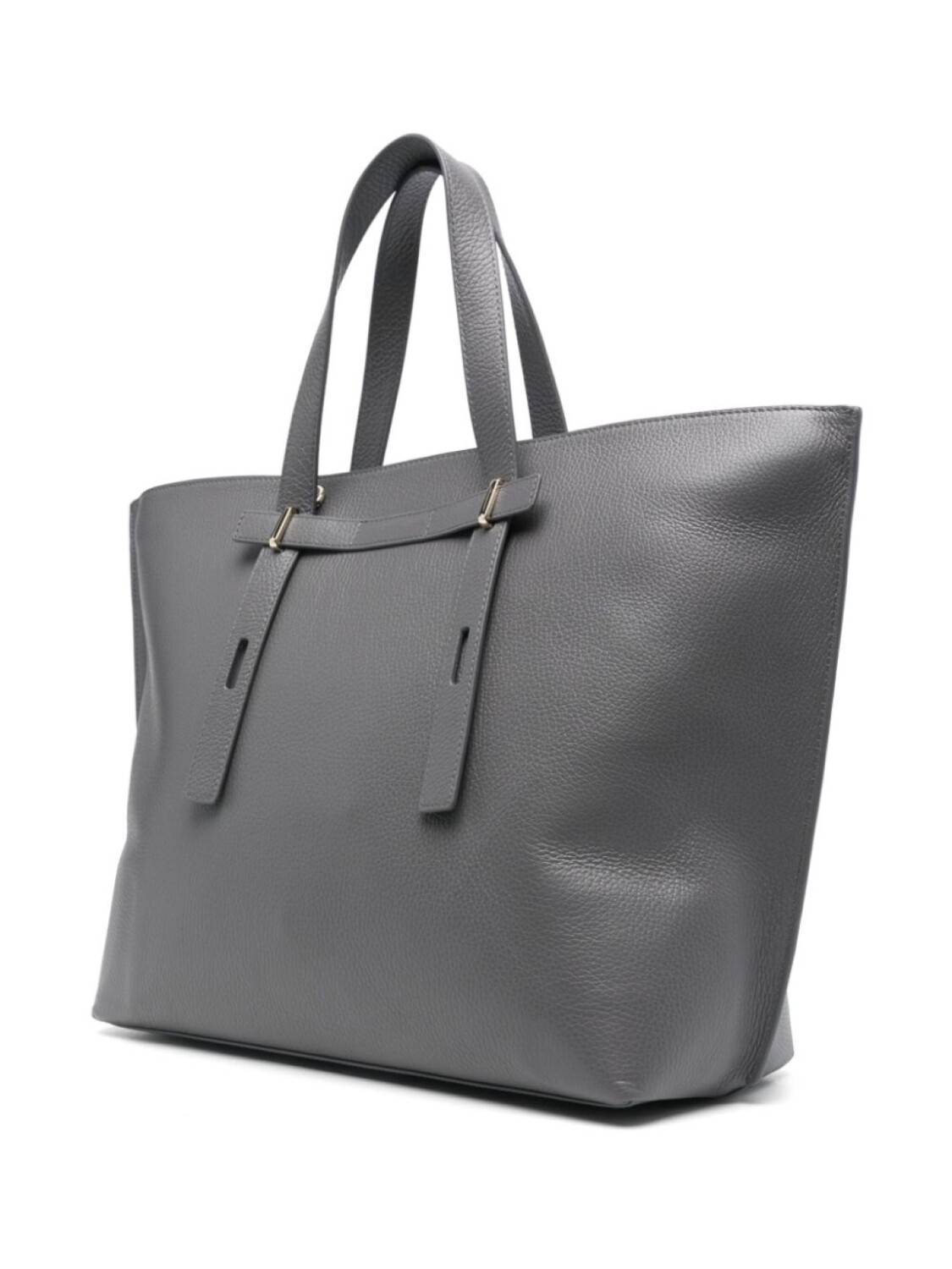 Подробнее о товаре: • серый • кожа • зернистая текстура • застежка на молнии сверху • две верхние ручки • металлические кольца • тисненый логотип спереди • основное отделение • внутренняя вставка с логотипом • внутренний карман на молнии • внутренние прорезные карманы • цельная подкладка • В комплект входит мешок-пыльник для хранения.