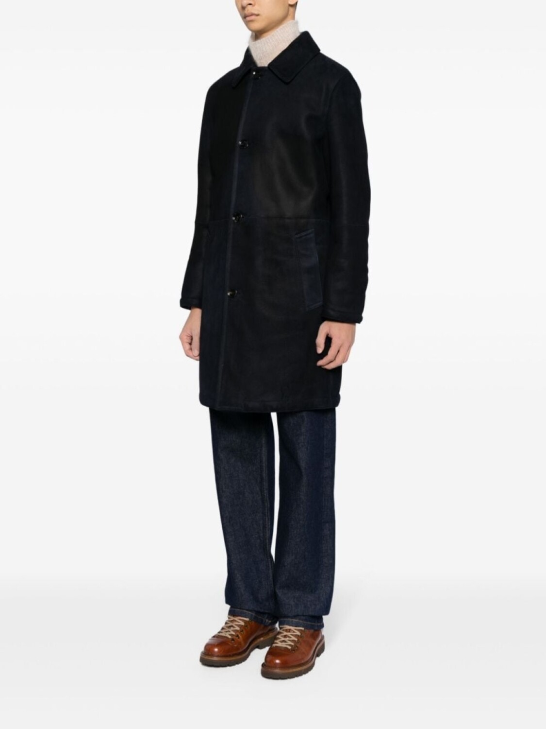 Brioni однобортное кожаное пальто, черный