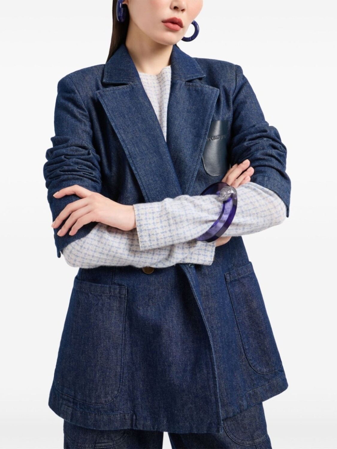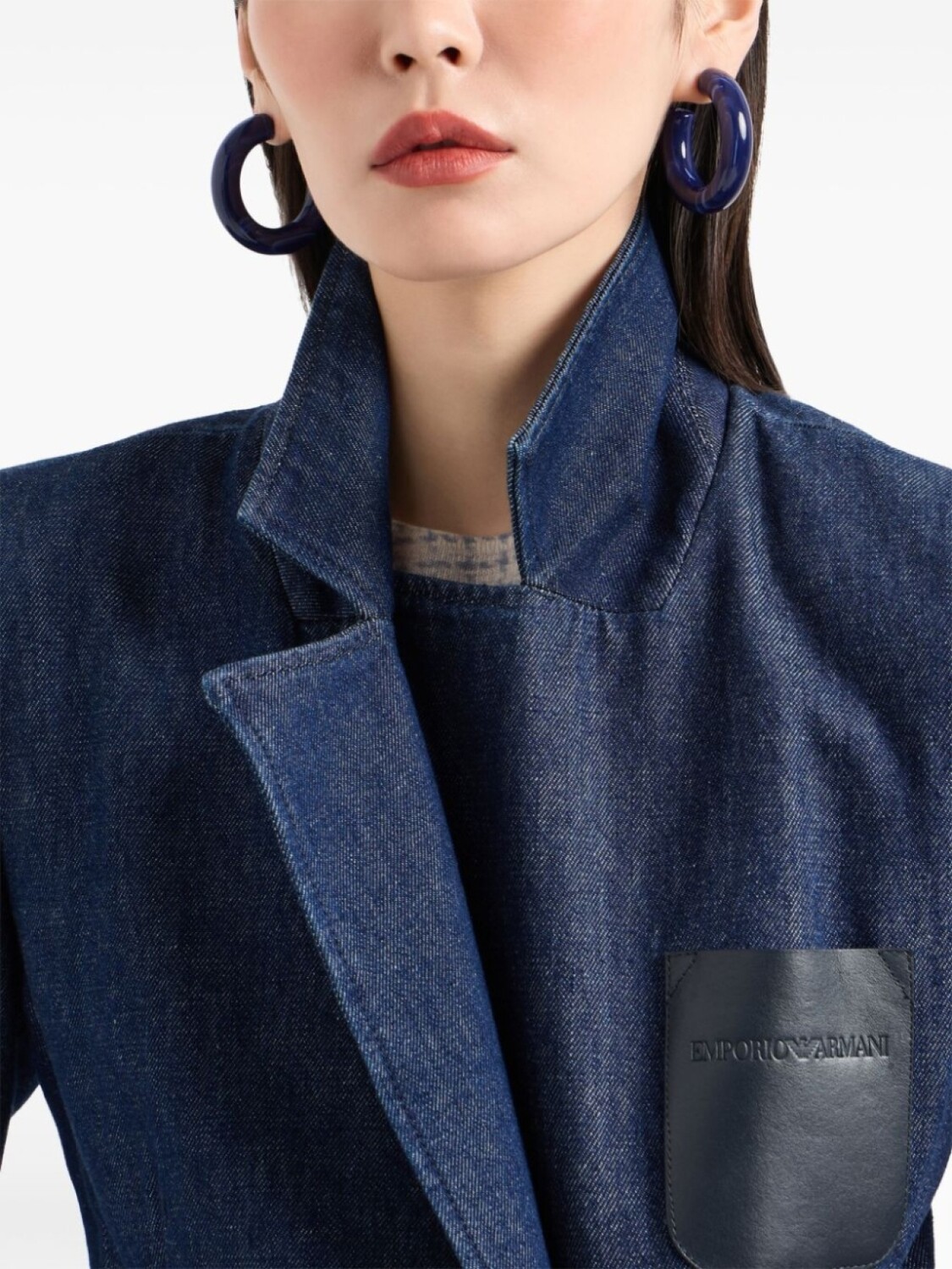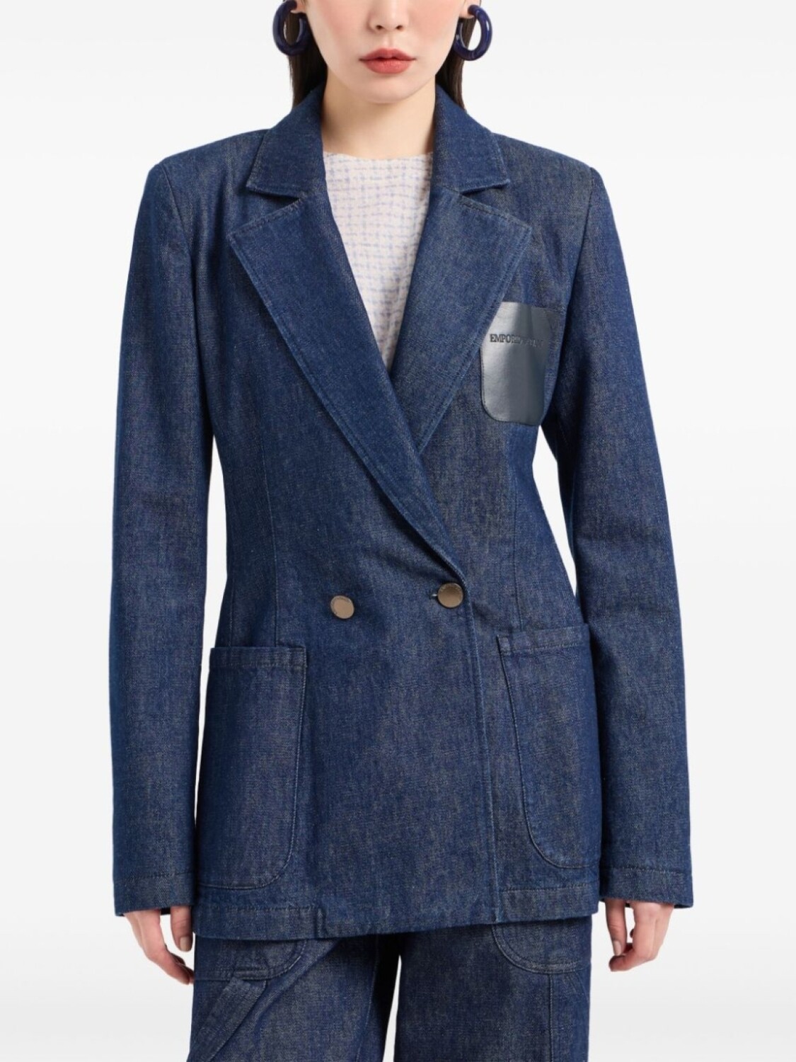 Emporio Armani двубортный блейзер из денима, синий