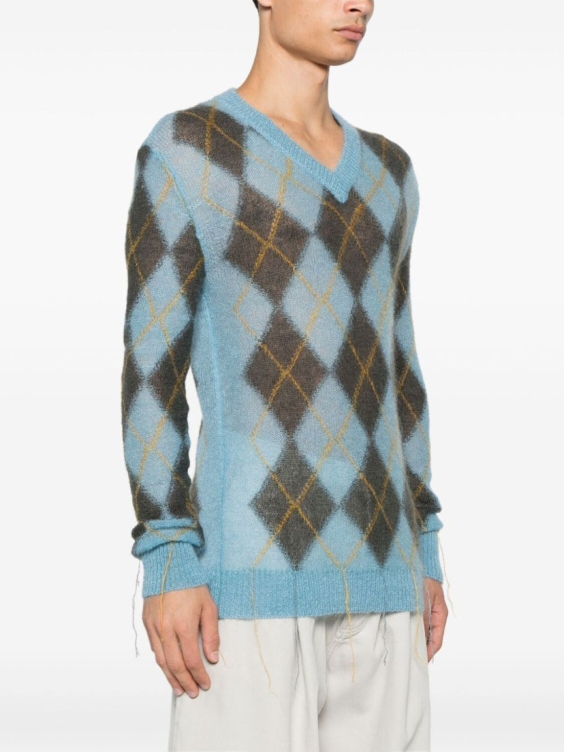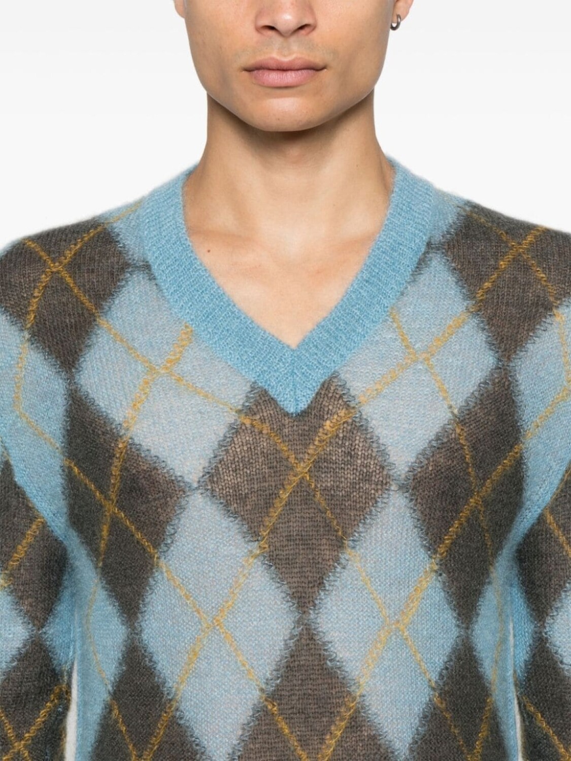 Marni свитер вязки интарсия с узором аргайл, синий 76 379₽