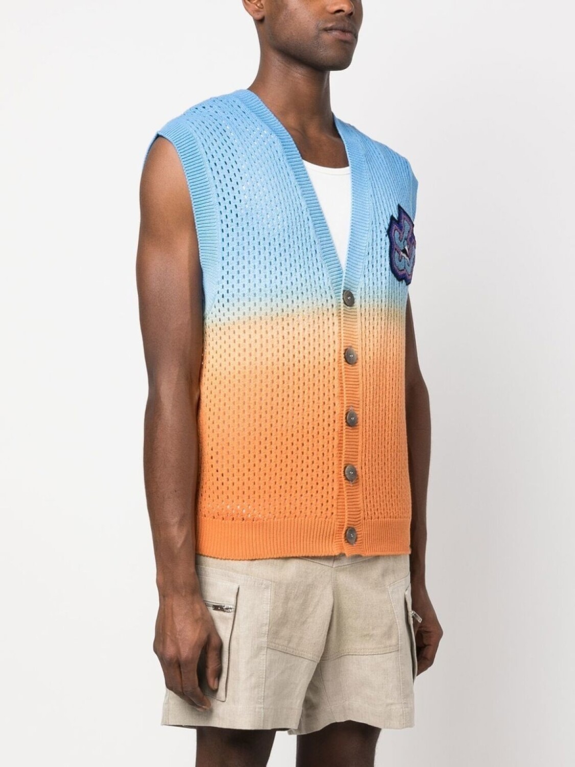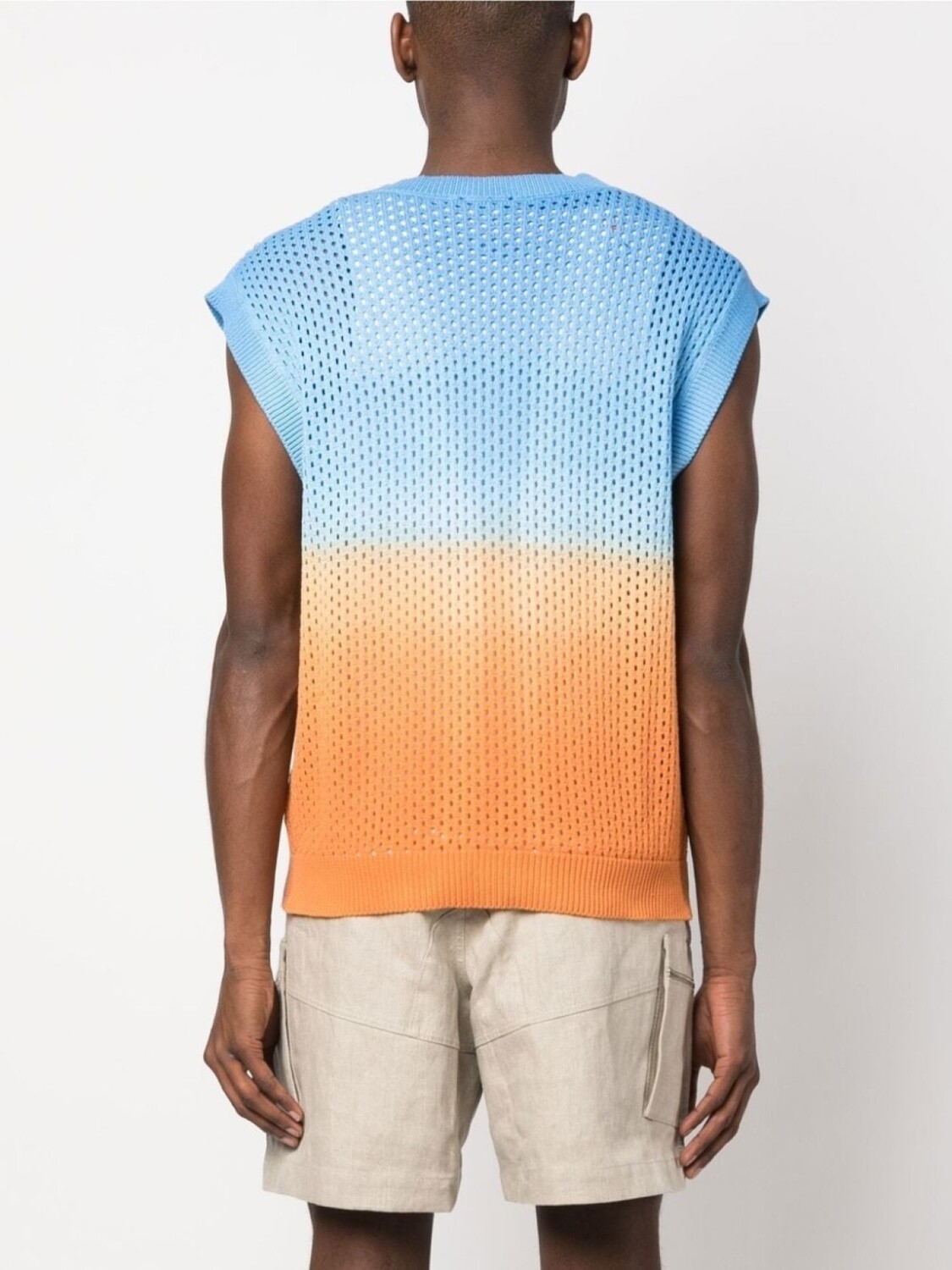 Синий, светло-оранжевый, хлопок, нашивка с логотипом на груди, без рукавов и прямой подол.