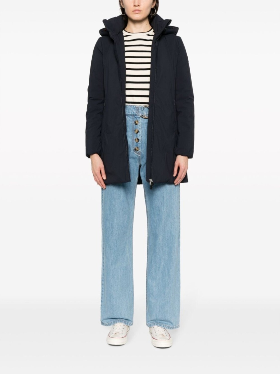 Подробнее о товаре: Темно-синий, переработанный полиэстер, водонепроницаемая модель, дутый материал, воротник-труба, двусторонняя молния спереди, длинные рукава, два кармана на молнии по бокам и длина до бедер. Этот товар как минимум на 50% состоит из переработанных или повторно использованных материалов. Узнать больше о том, какие товары получают отметку «Ответственный выбор», можно из материала «Как мы оцениваем экологичность и этичность».