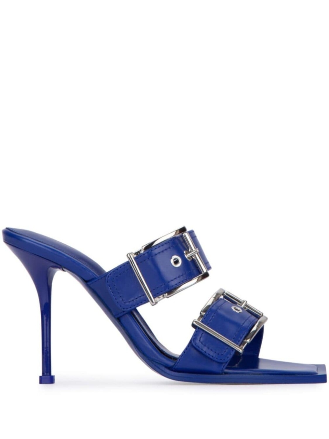 Мюли Alexander McQueen 100 мм с пряжкой и ремешком, синий 79 904₽