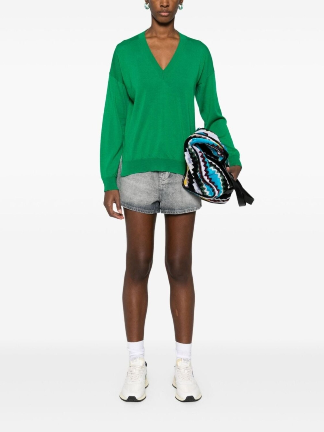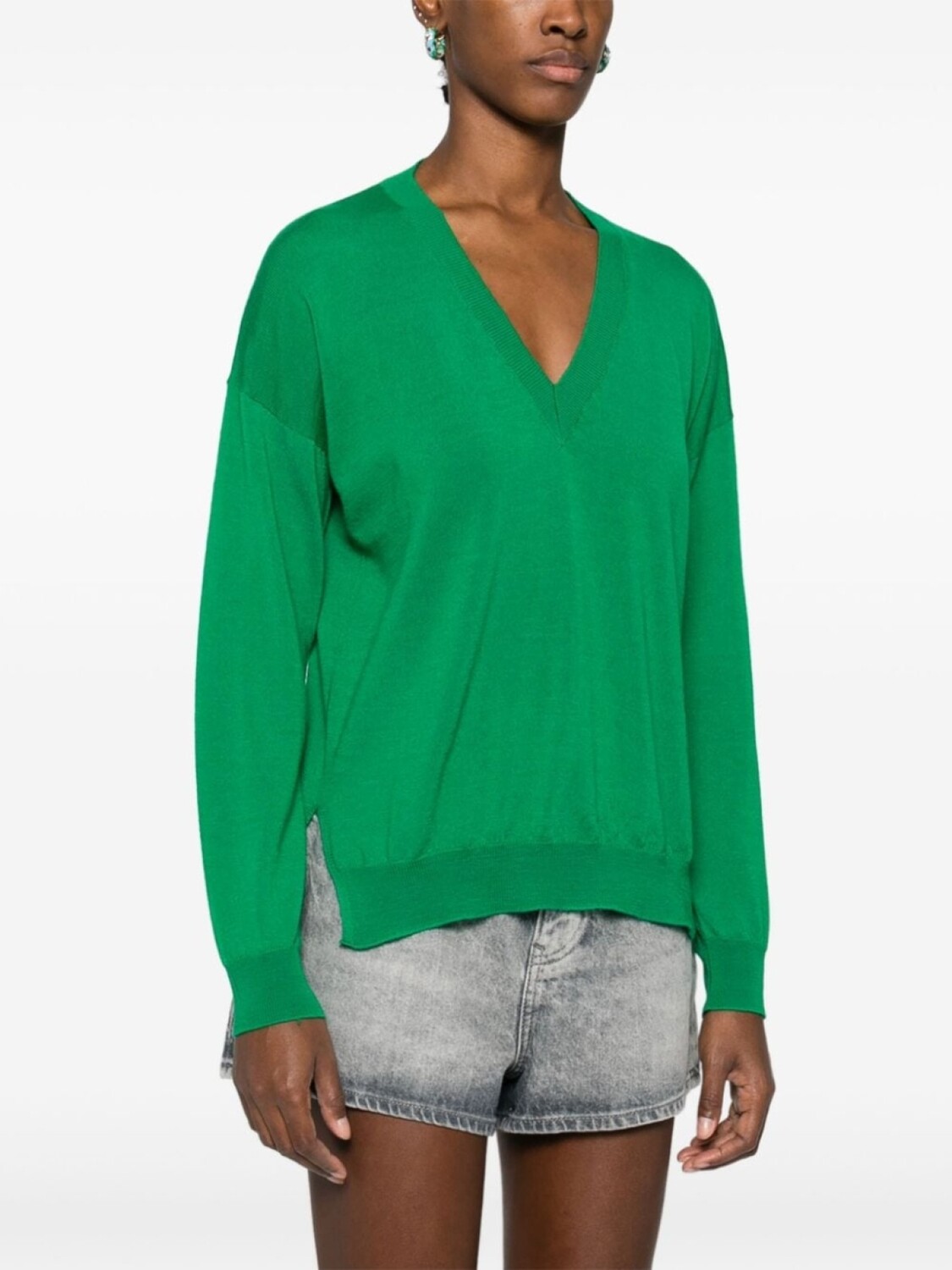 ERMANNO FIRENZE шерстяной джемпер с V-образным вырезом, зеленый