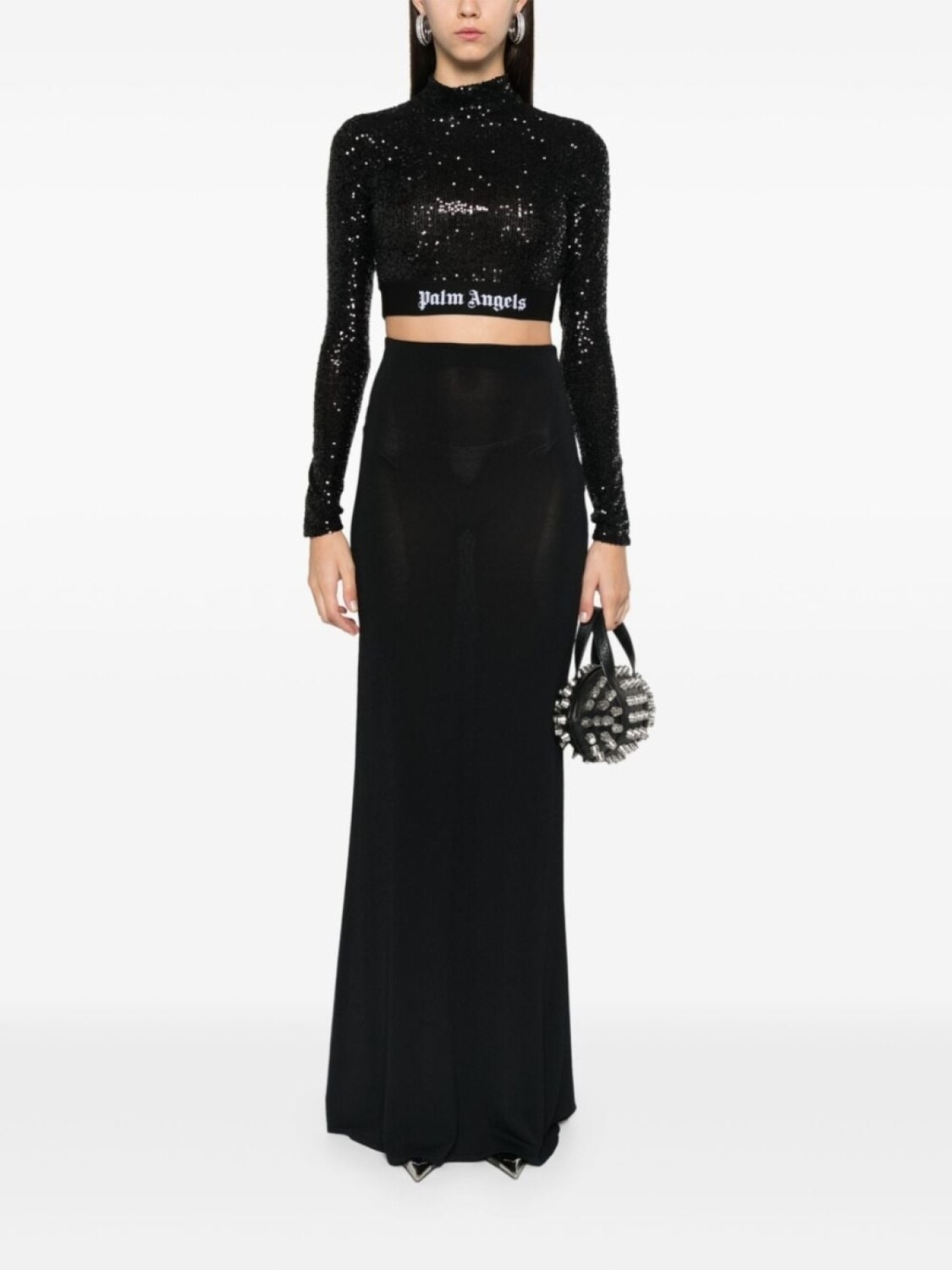 Palm Angels топ с логотипом и пайетками, черный