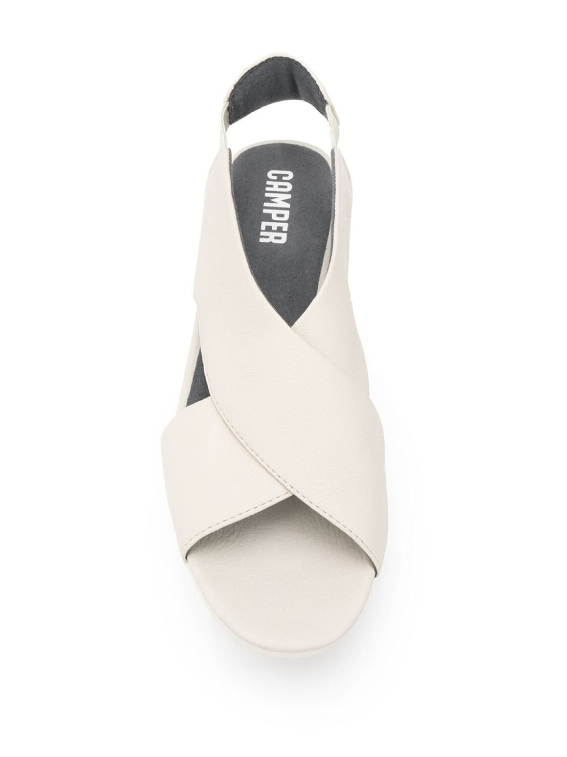 Сандалии с эластичным ремешком на пятке от Camper. Открытый носок, эластичная вставка, фирменная стелька и низкая танкетка.