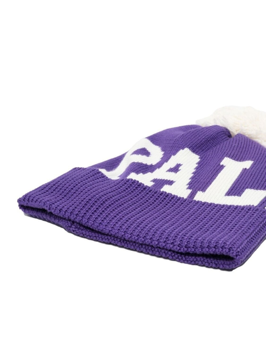 Palm Angels шапка бини с помпоном и логотипом, фиолетовый