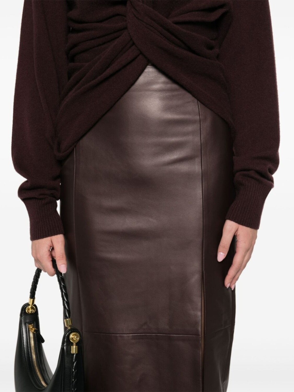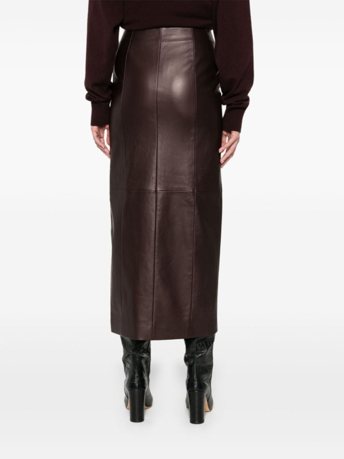 Kiton кожаная юбка миди, коричневый