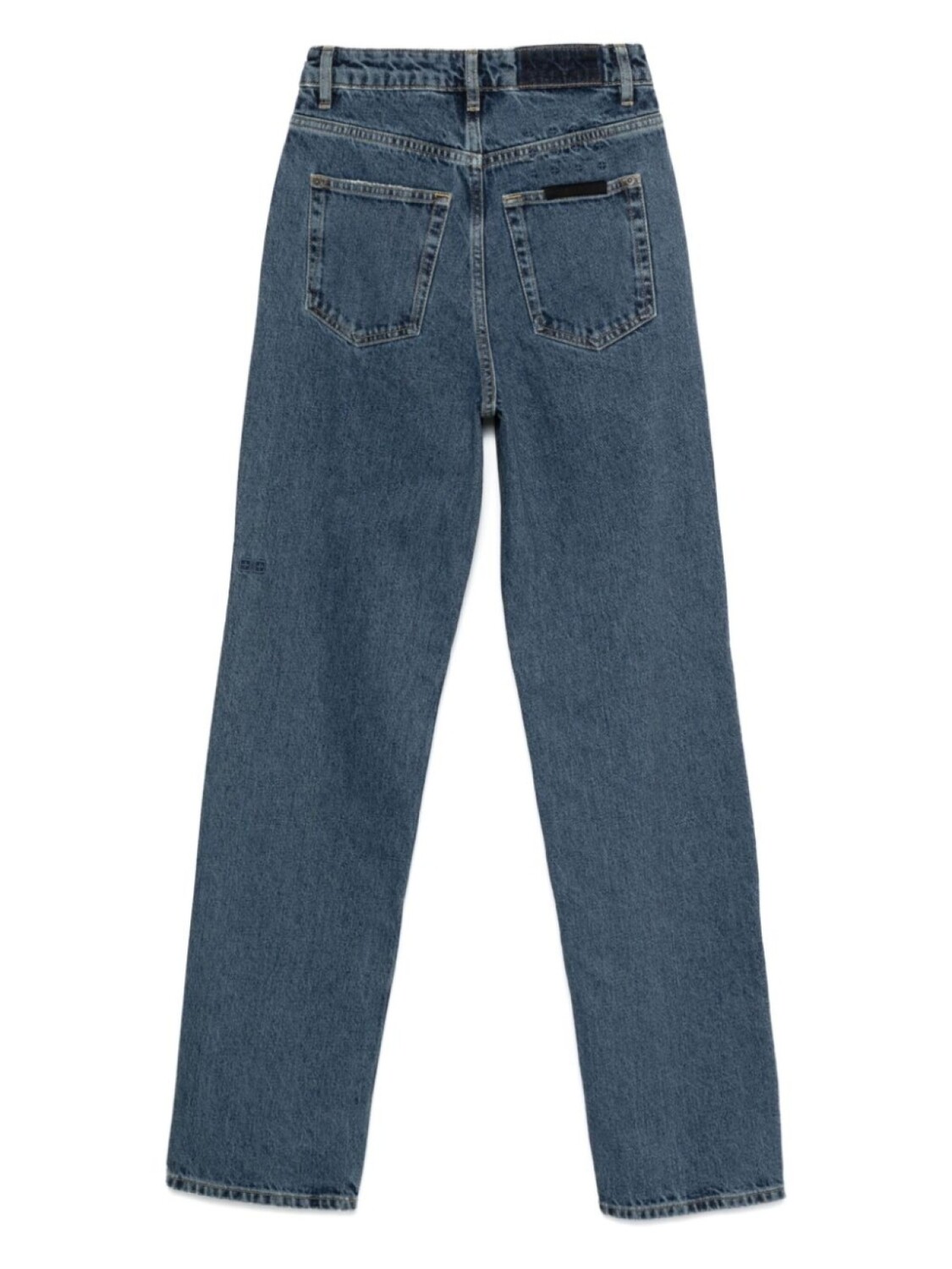Индигово-синяя джинсовая ткань из хлопковой смеси, застежка на пуговицы и молнию спереди, шлевки для ремня, пять классических карманов, вышивка крестом 4x4 сзади, зауженные книзу штанины с высокой посадкой