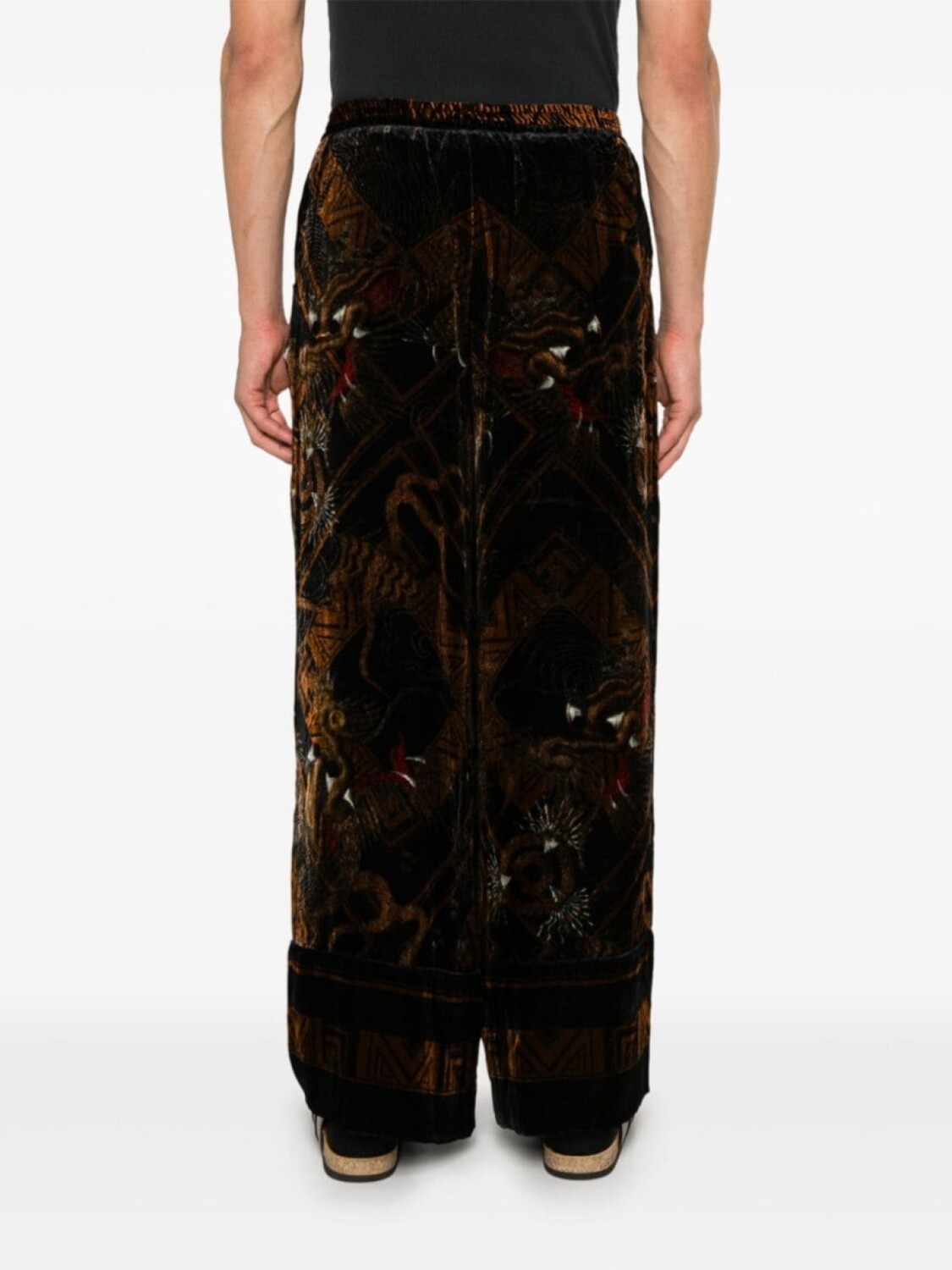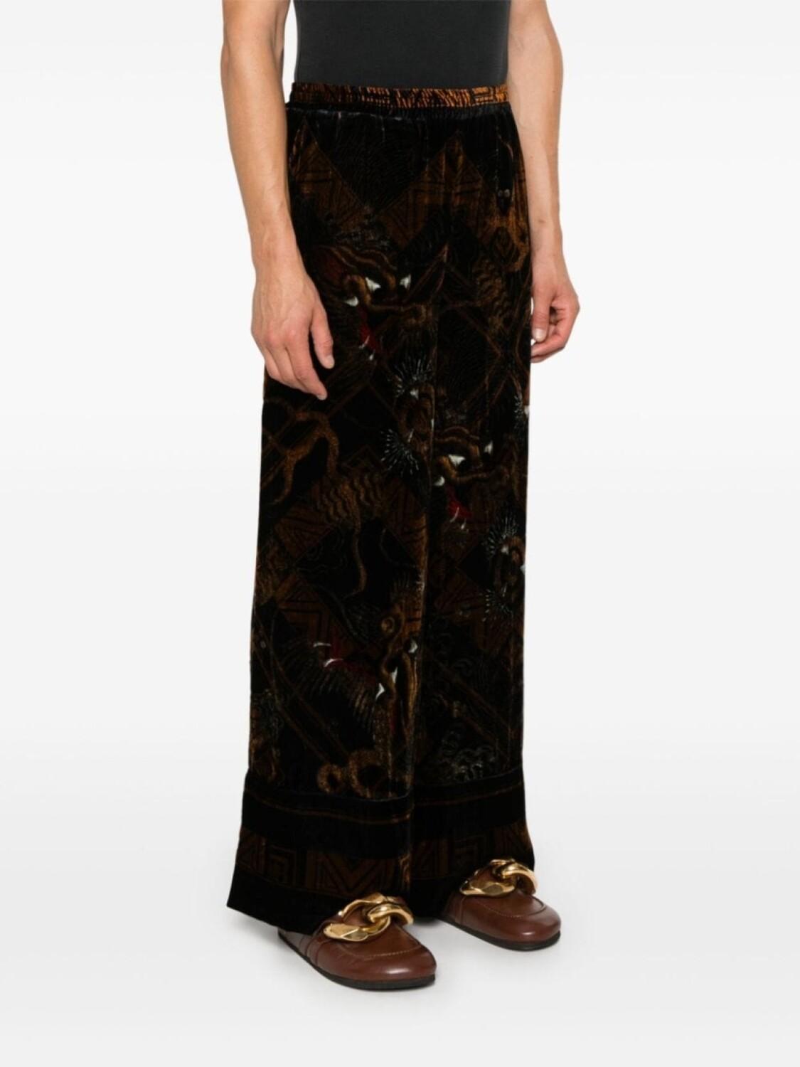 Черный/многоцветный велюровый принт в стиле иллюстраций эластичный пояс два прорезных кармана по бокам прямой штанин