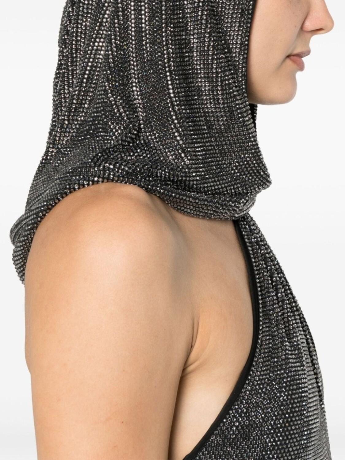 Мини-платье с капюшоном от Giuseppe Di Morabito, украшенное стразами, черный