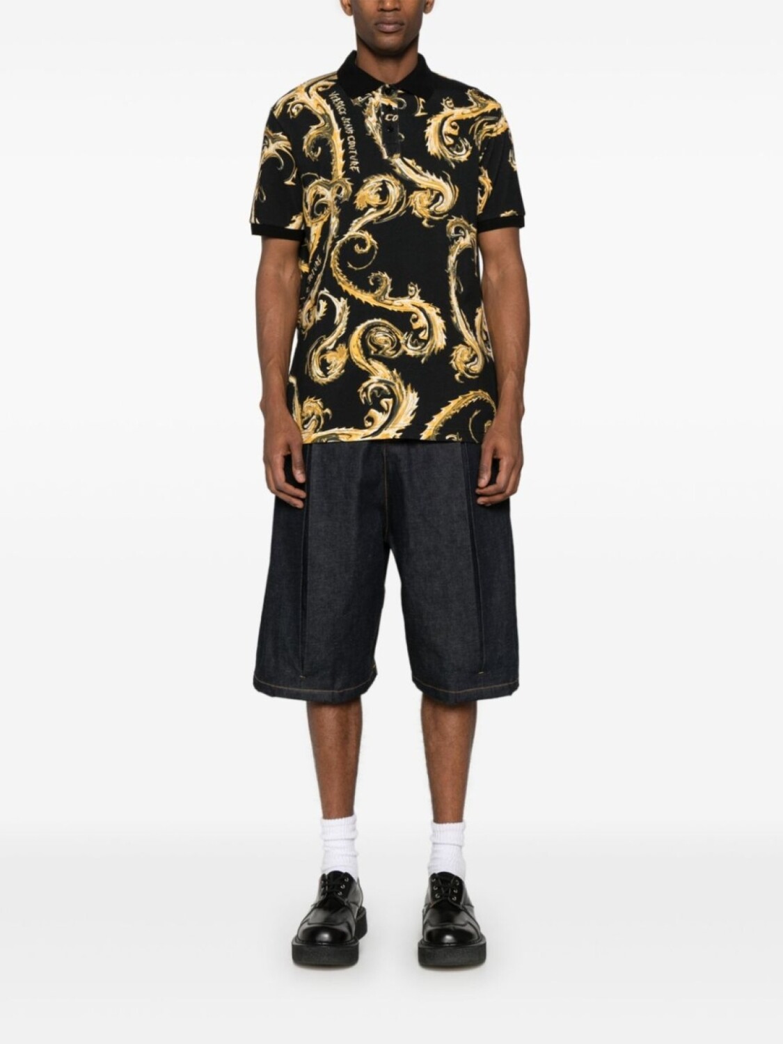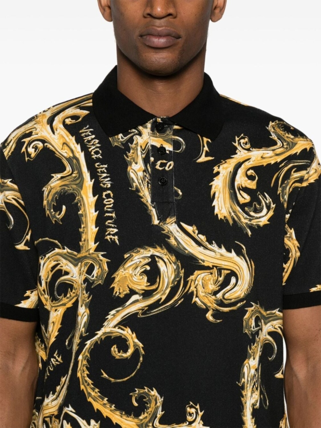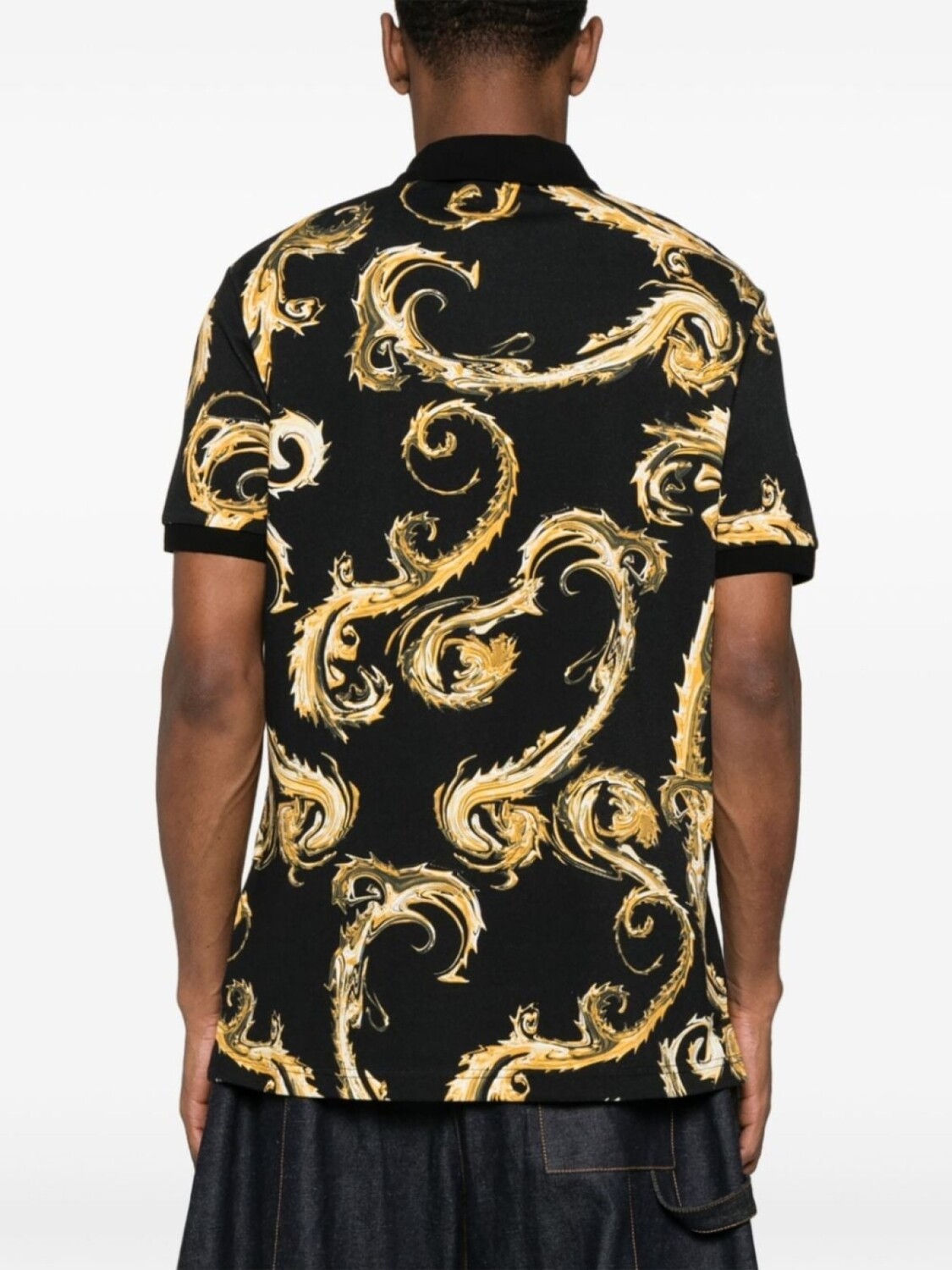 Хлопковый топ-поло с принтом «барокко» от Versace Jeans Couture, черный