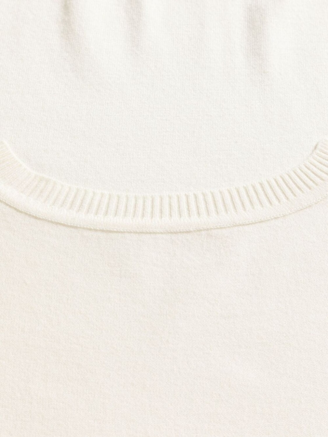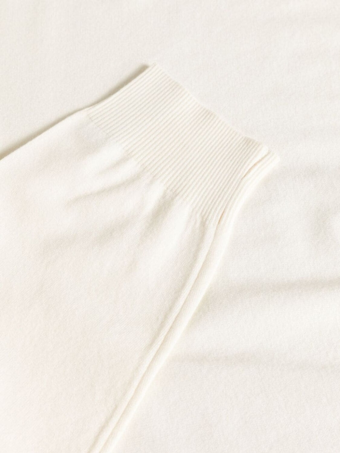 Оттенок слоновой кости, вязаные края в рубчик, длинные рукава, завязки сверху