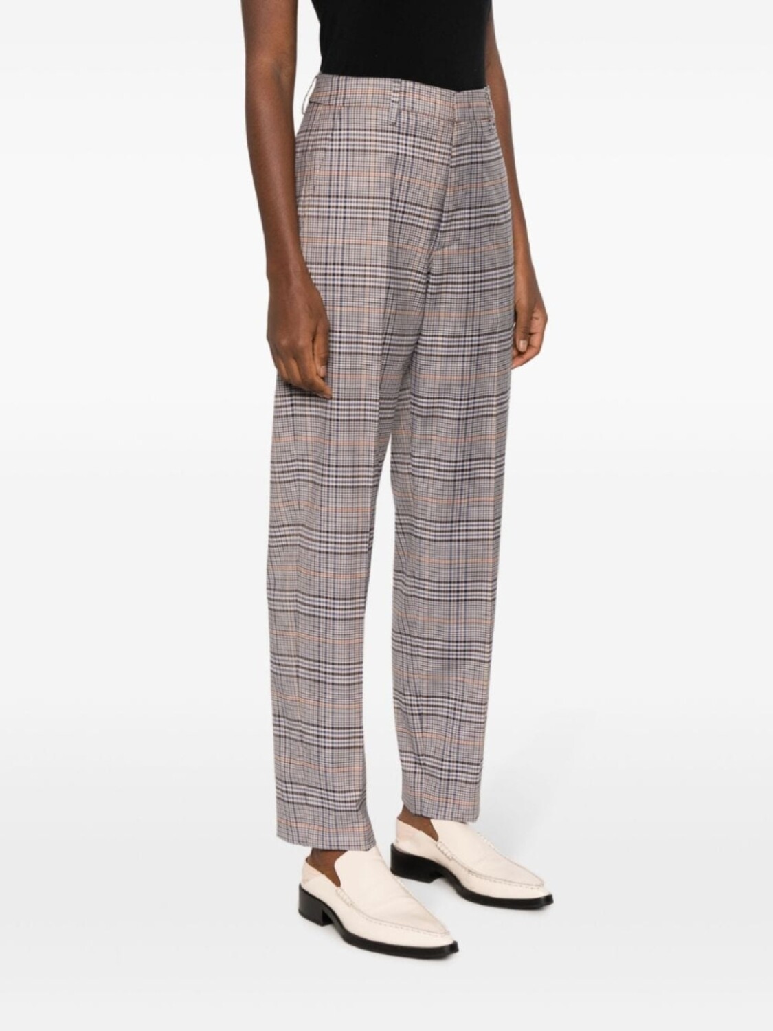 Сине-серый, разноцветный, узор в клетку Prince of Wales, средняя посадка, зауженный крой, петли для ремня, потайная застежка спереди, два кармана по бокам и два кармана с листочкой сзади.