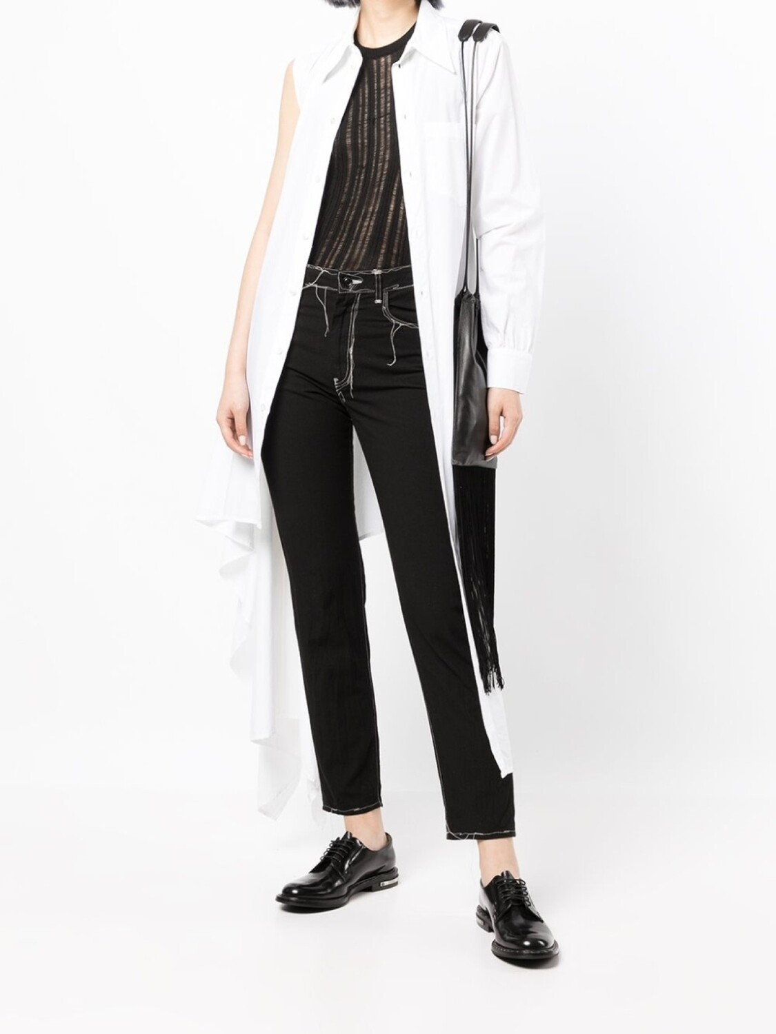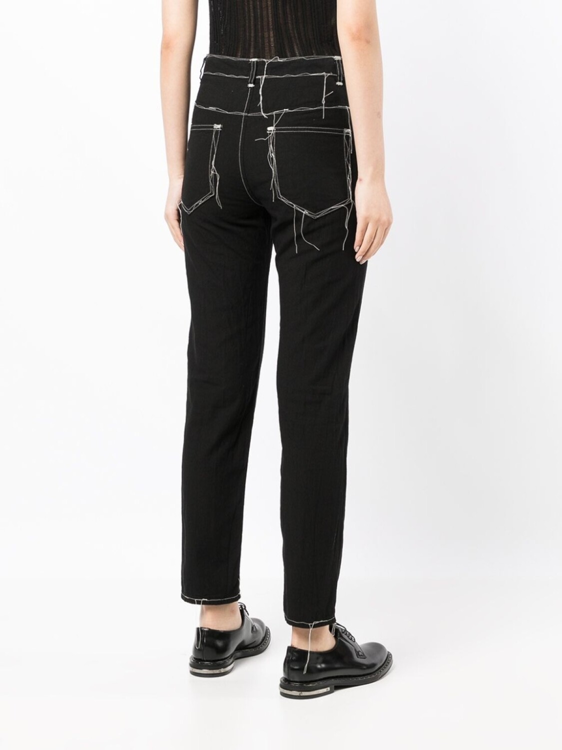 Контрастная строчка, классическая пятикарманная модель, укороченная длина и облегающий крой. Цвет: черный.