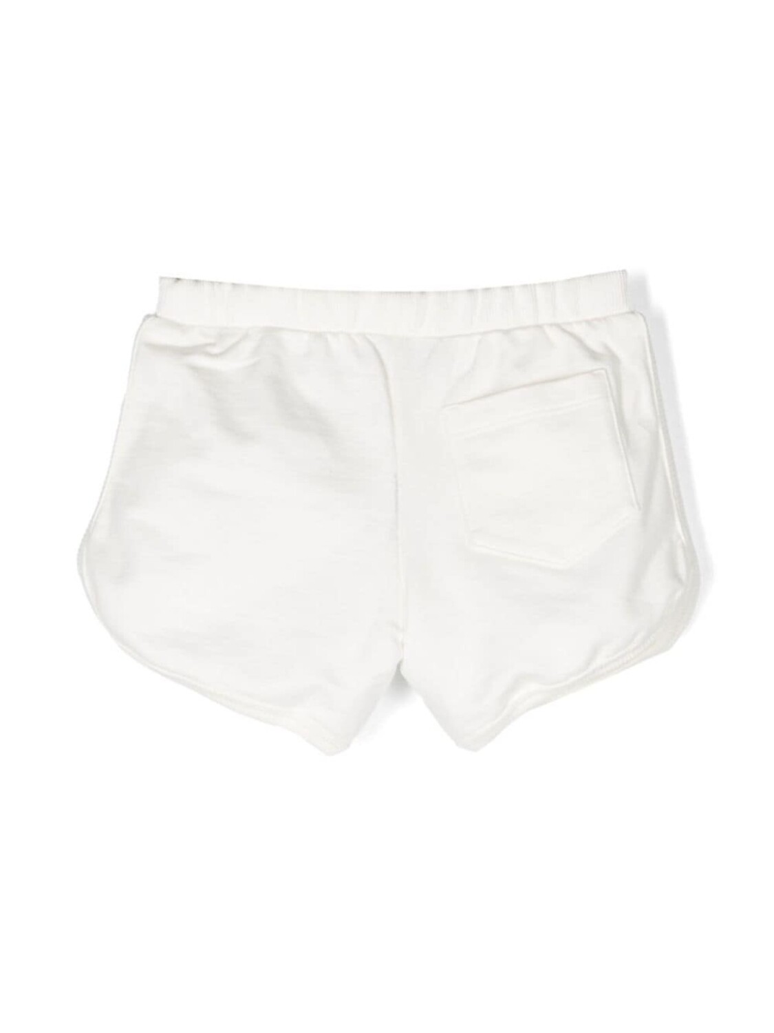 Белый, золотистый, эластичный хлопок, вышитый логотип, эластичный пояс, накладной карман сзади, закругленный подол и длина до бедер.