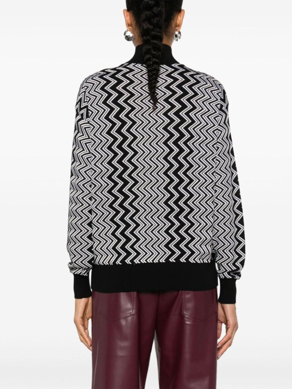 Черный/белый, смесовая шерсть, плетение с узором зигзаг, вязаные края в рубчик, высокий воротник, приспущенные плечи, длинные рукава, прямой подол, Полученная вами вещь может незначительно отличаться от изображенной на сайте. Эта модель, как и другие вещи Missoni, выполнена вручную, поэтому товар может незначительно отличаться от фотографий на сайте.