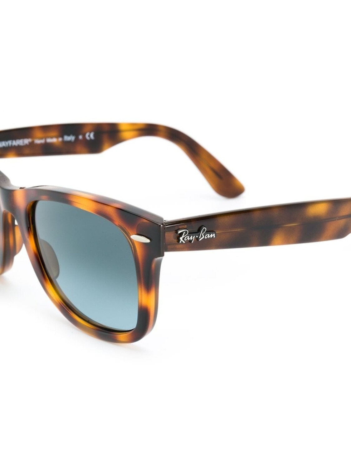 Солнцезащитные очки 'wayfarer' от Ray Ban (Рэй Бан). Темные линзы, эффект черепашьего панциря, квадратная оправа, логотип бренда на внешней стороне дужки и прямые дужки с остро изогнутыми концами. Цвет: коричневый. Прилагается защитный чехол. Модель в стиле унисекс.