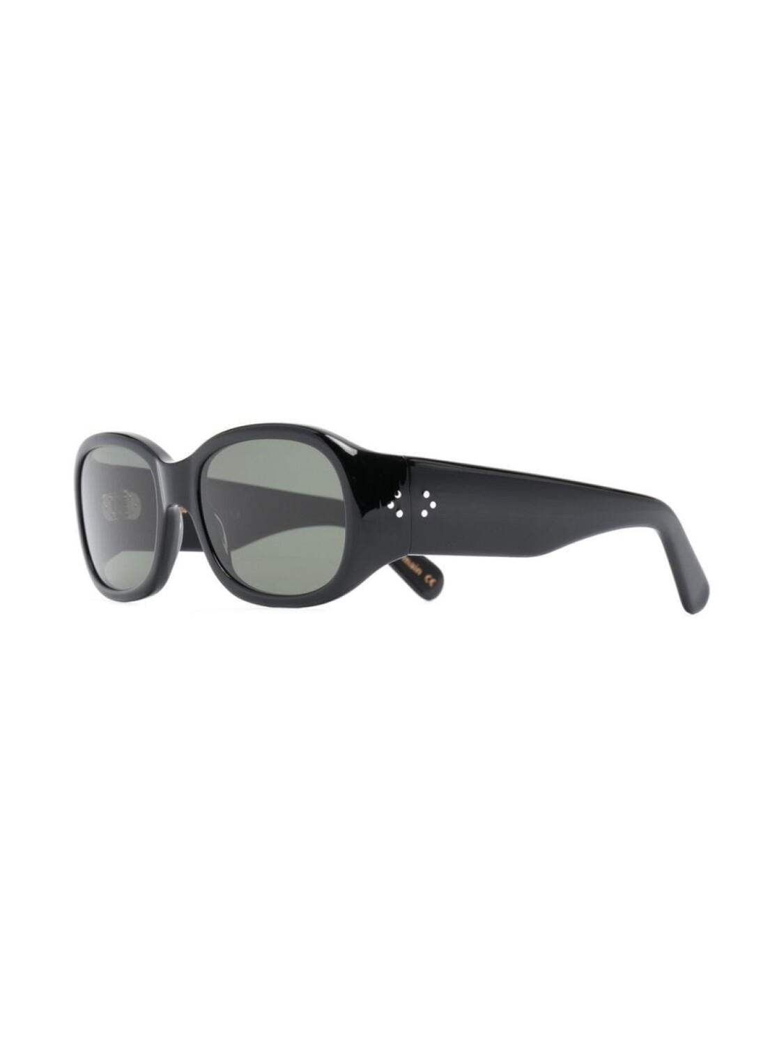 Черный, темно-зеленый, ацетат, прямоугольная оправа, затемненные линзы зеленого цвета, линзы с защитой от ультрафиолета, скульптурные дужки и дужки с закругленными концами. В комплект входит защитный чехол для очков.