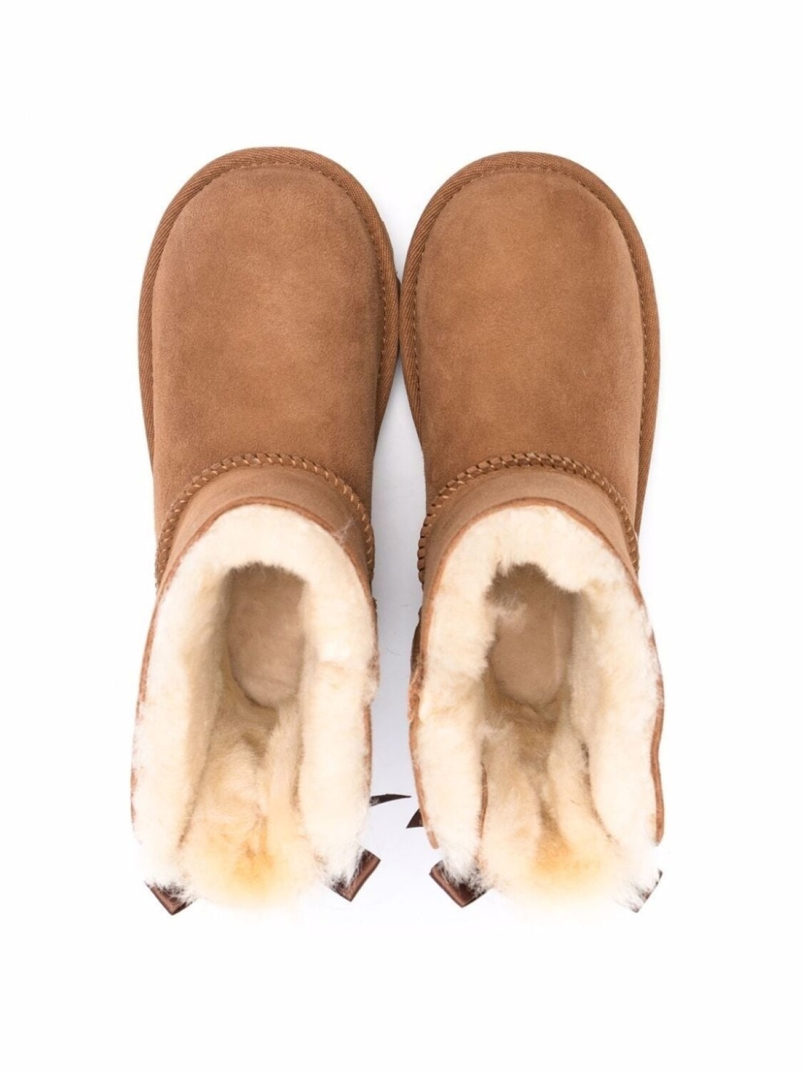 Закругленный носок, шнуровка сзади, стелька с логотипом и плоская резиновая подошва.