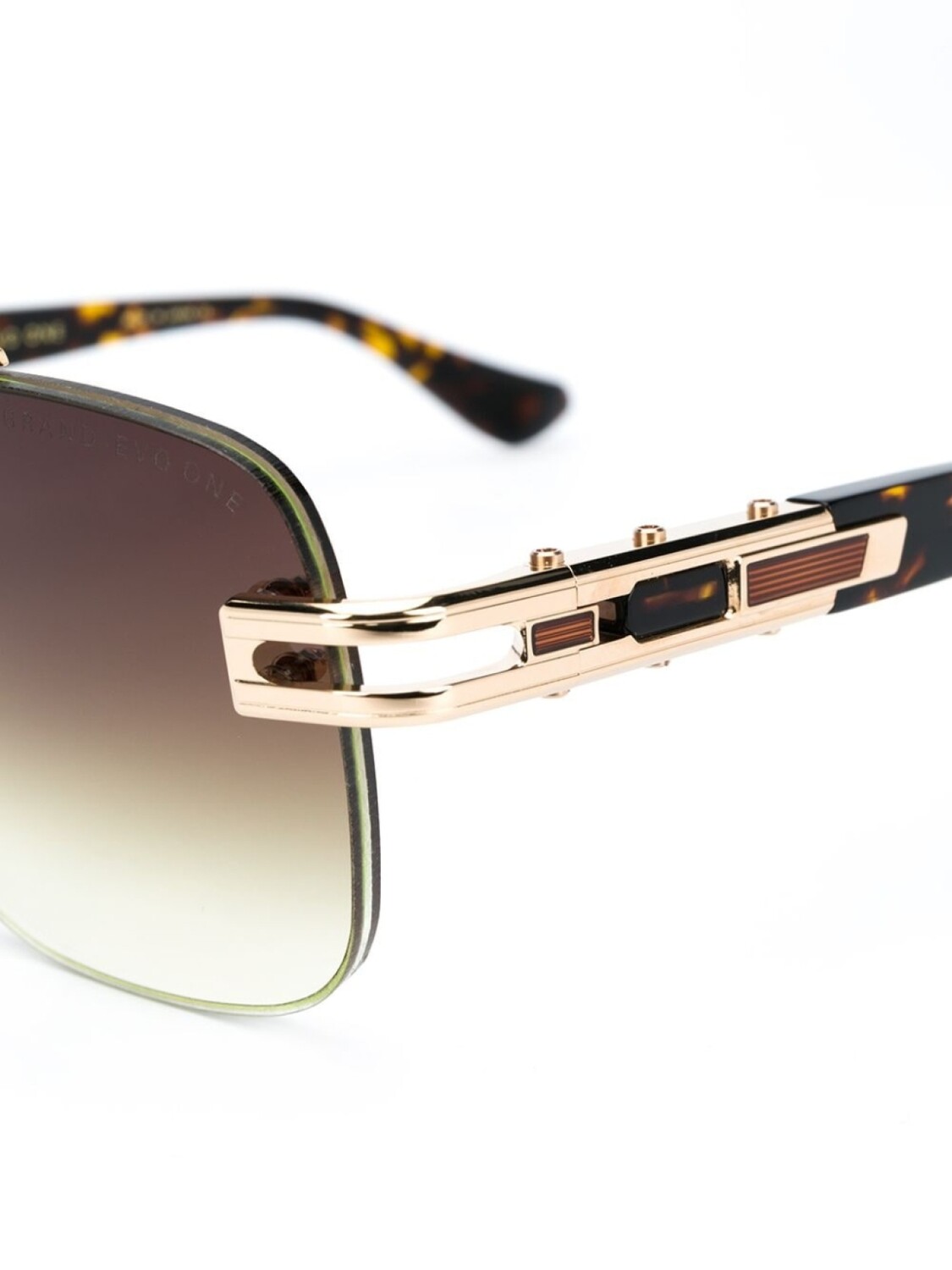 Солнцезащитные очки Grand-Evo One от Dita Eyewear. Квадратная оправа, узкая верхняя планка, градиентные линзы, прямые дужки с изогнутыми концами, логотип бренда на внутренней стороне дужки и детали из панциря черепахи. Цвет: коричневый. Прилагается защитный чехол.