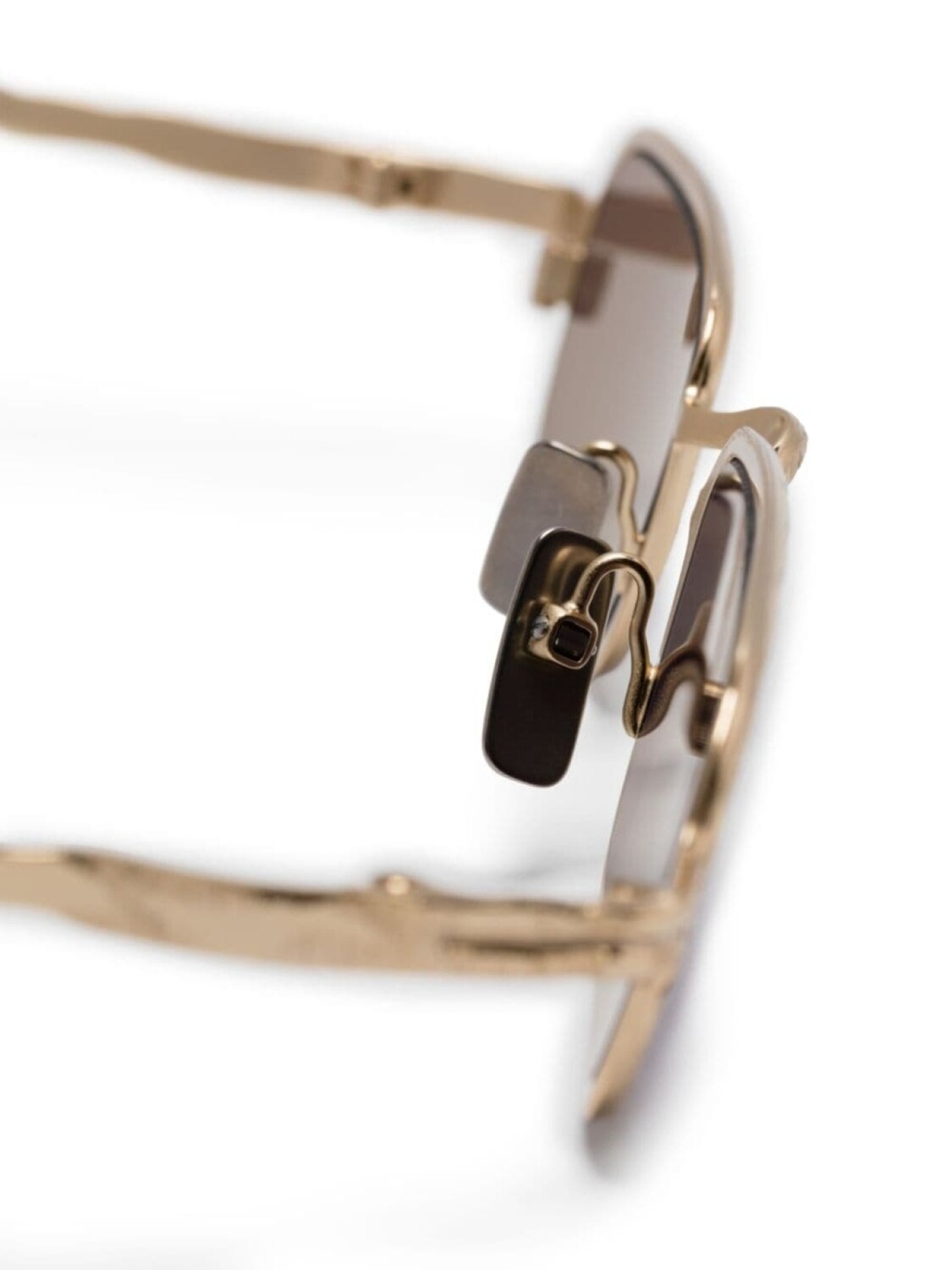 Золотистый, half-rim design, прямоугольная форма, серые линзы, скульптурные дужки с закругленными концами, носоупоры, В комплект входит защитный чехол для очков.