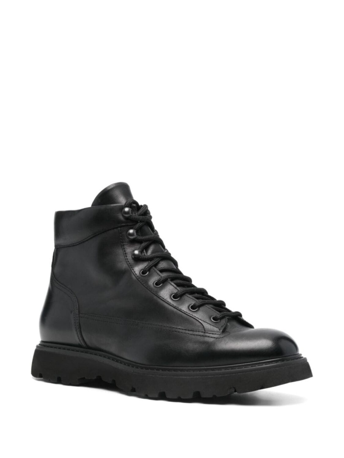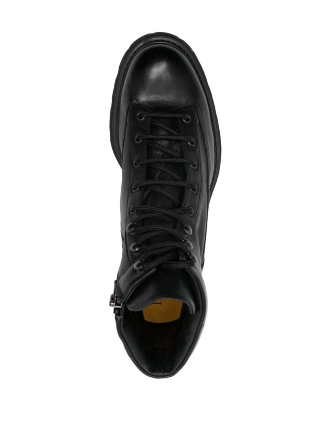 Черный, телячья кожа, шнуровка спереди, застежка на молнии сбоку, длина по щиколотку, закругленный носок, стелька с логотипом, кожаная подкладка, рифленая резиновая подошва