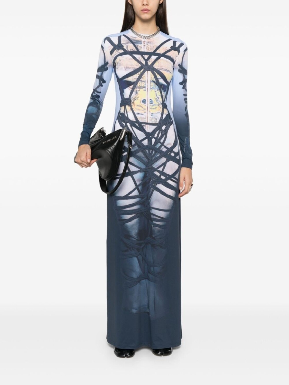 Платье макси Y/Project с принтом trompe l'oeil, синий 81 919₽