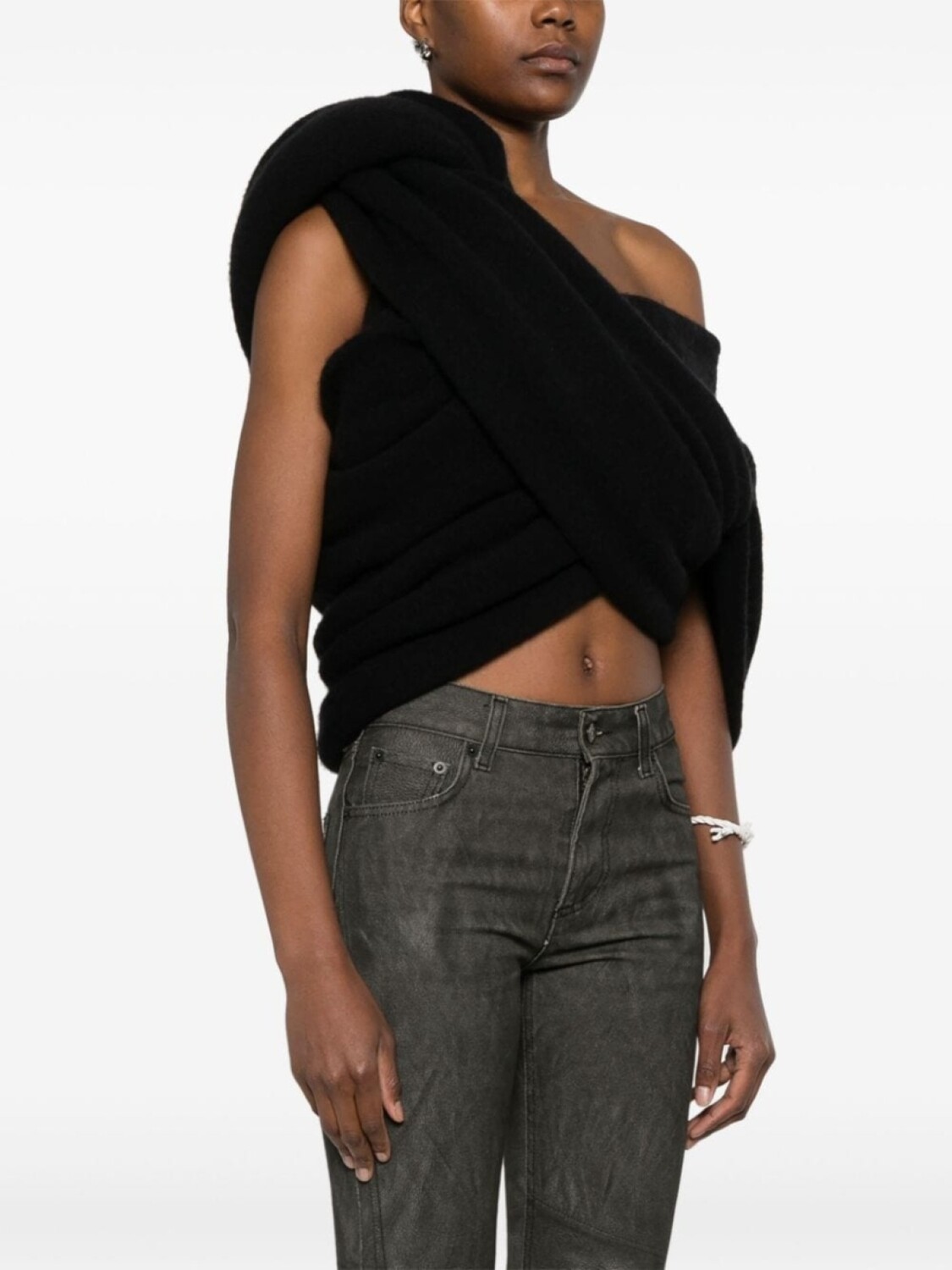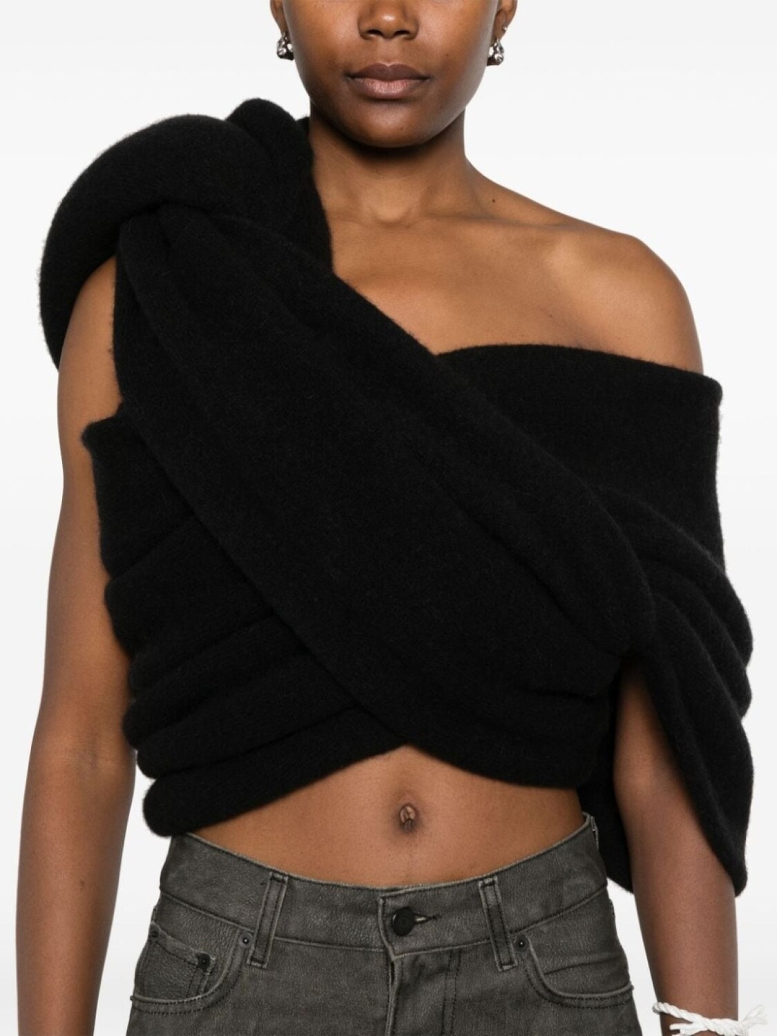 Черный, вязаный дизайн, матовый эффект, драпированная юбка, модель без застежки, без рукавов, укороченная длина, Эта вещь может быть стилизована несколькими способами.