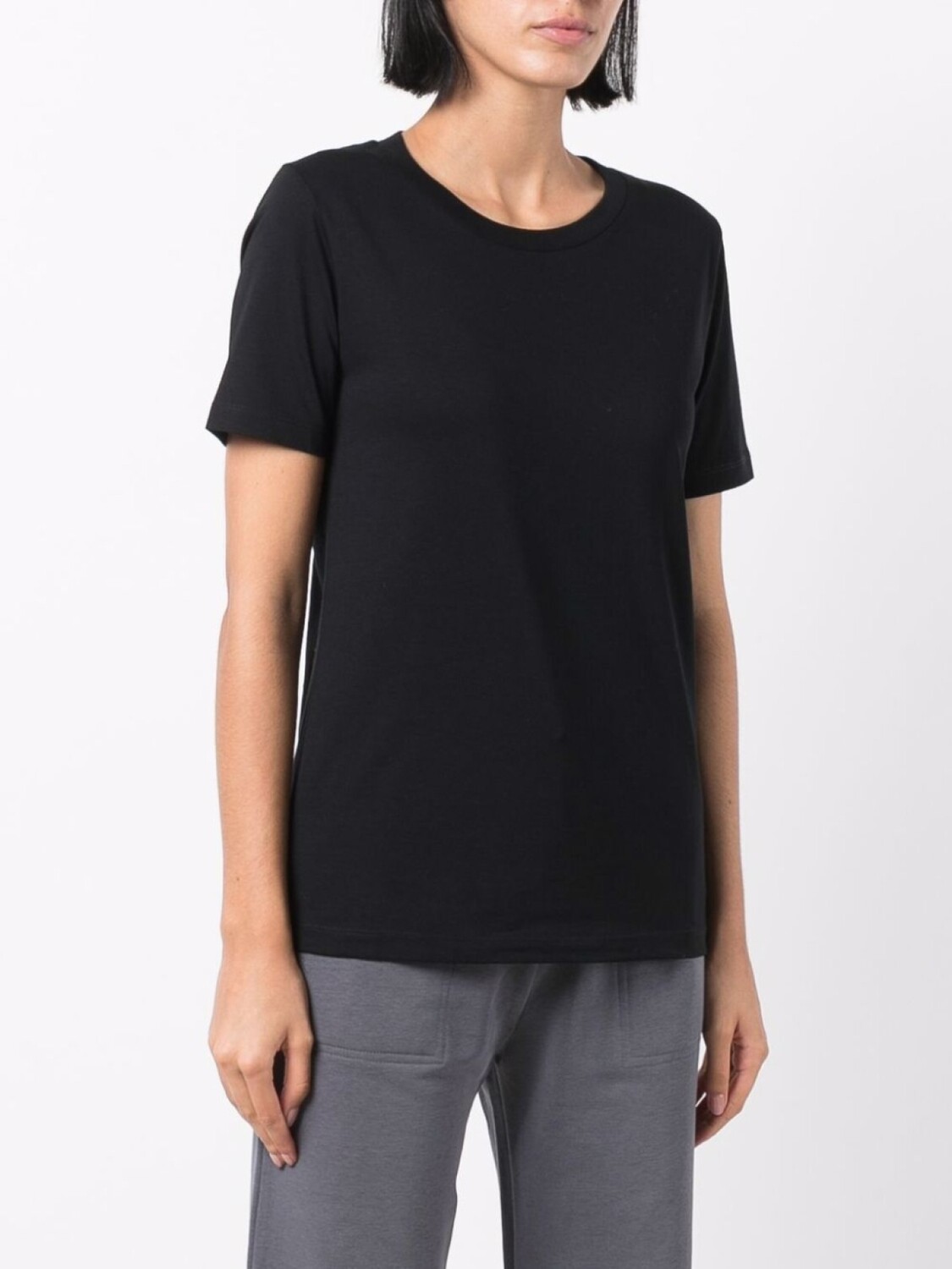 Круглый вырез, короткие рукава и прямой подол. Цвет: черный.