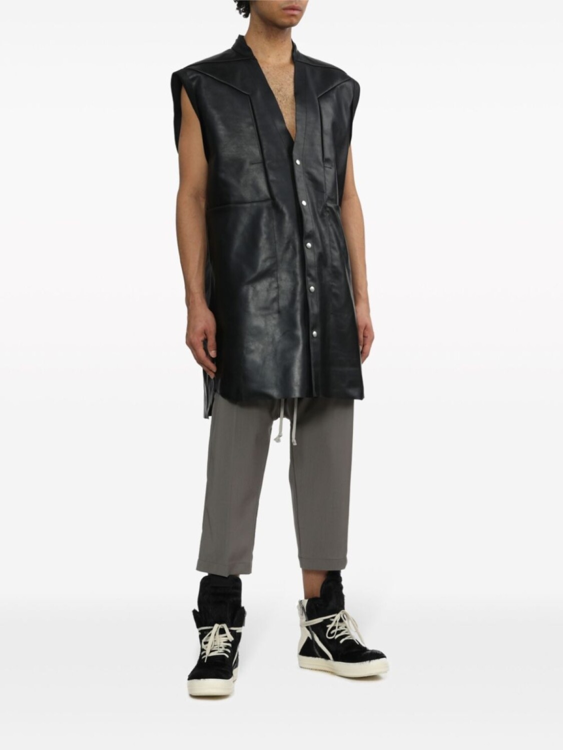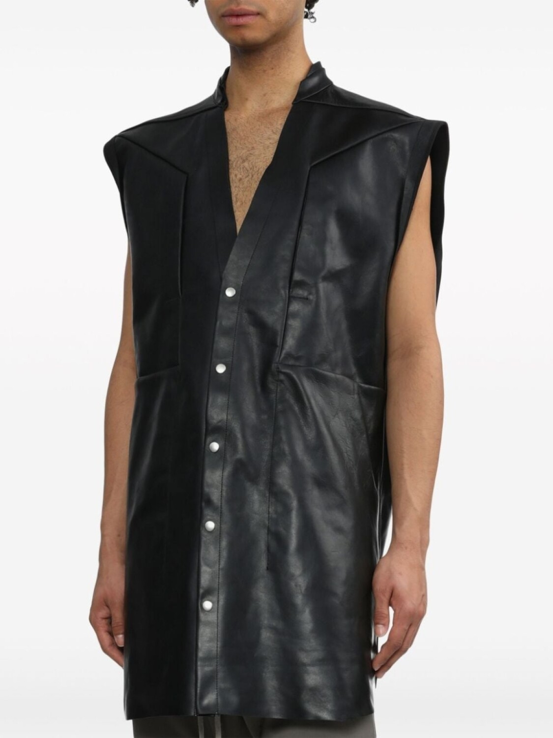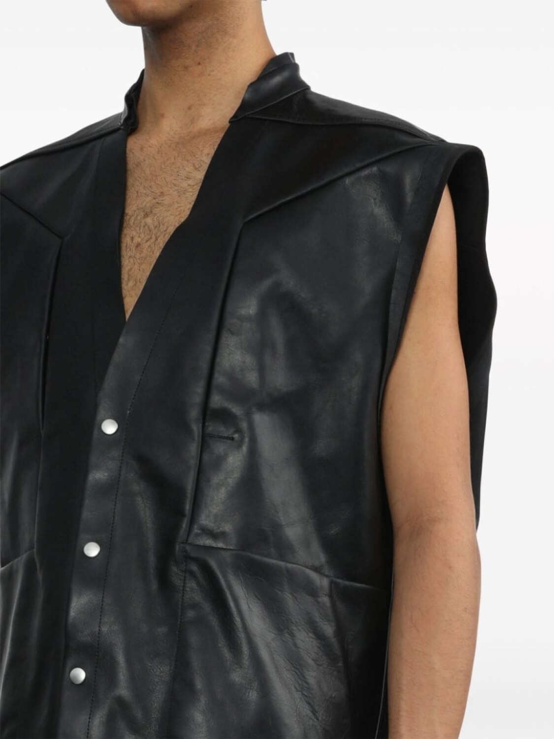 Rick Owens кожаный жилет с V-образным вырезом, черный