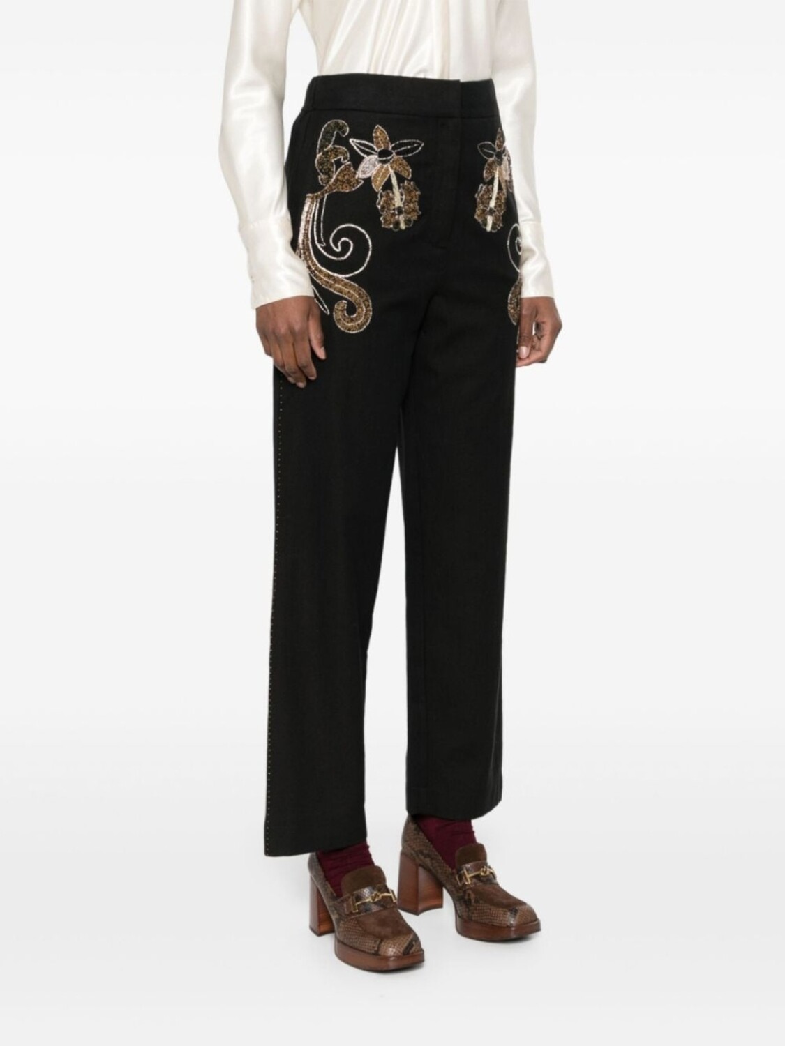 Forte Forte зауженные брюки с вышивкой бисером, черный 40 050₽