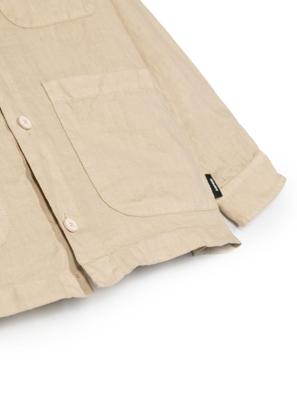 Подробнее о товаре: Бежевый, лен, маленькая подвеска с логотипом, классический воротник, длинные рукава, манжеты на пуговицах, застежка на пуговицах спереди, нагрудный накладной карман, два накладных кармана спереди и прямой подол. Этот товар как минимум на 50% состоит из материалов, которые признаны более безопасными для окружающей среды, и/или произведены с использованием методов, которые помогают сократить потребление воды и химических веществ. Узнать больше о том, какие товары получают отметку «Ответственный выбор», можно здесь.