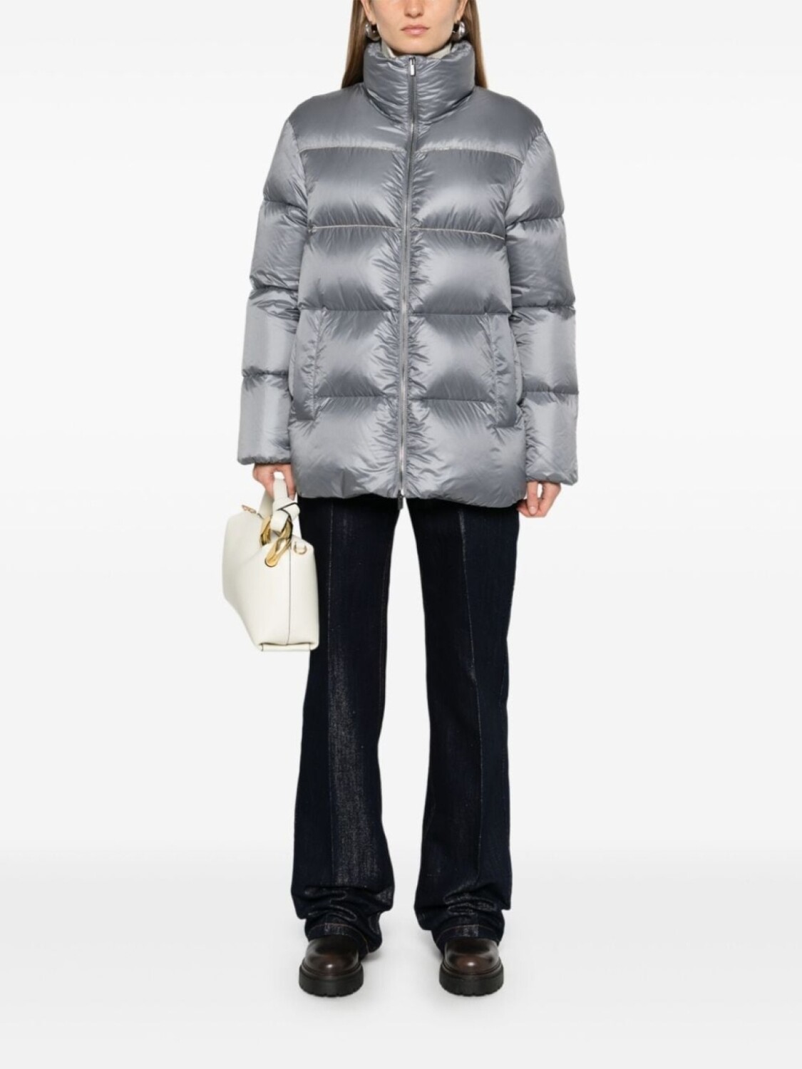 Подробнее о товаре: • серый • наполнитель из смеси пуха и пера • стеганная модель • дутый материал • водоотталкивающий материал • легкая конструкция • двусторонняя молния спереди • высокий воротник • отделка бисером • длинные рукава • эластичные манжеты • два боковых кармана с застежкой на кнопки • нашивка с логотипом сзади • внутренний накладной карман • цельная подкладка • прямой подол