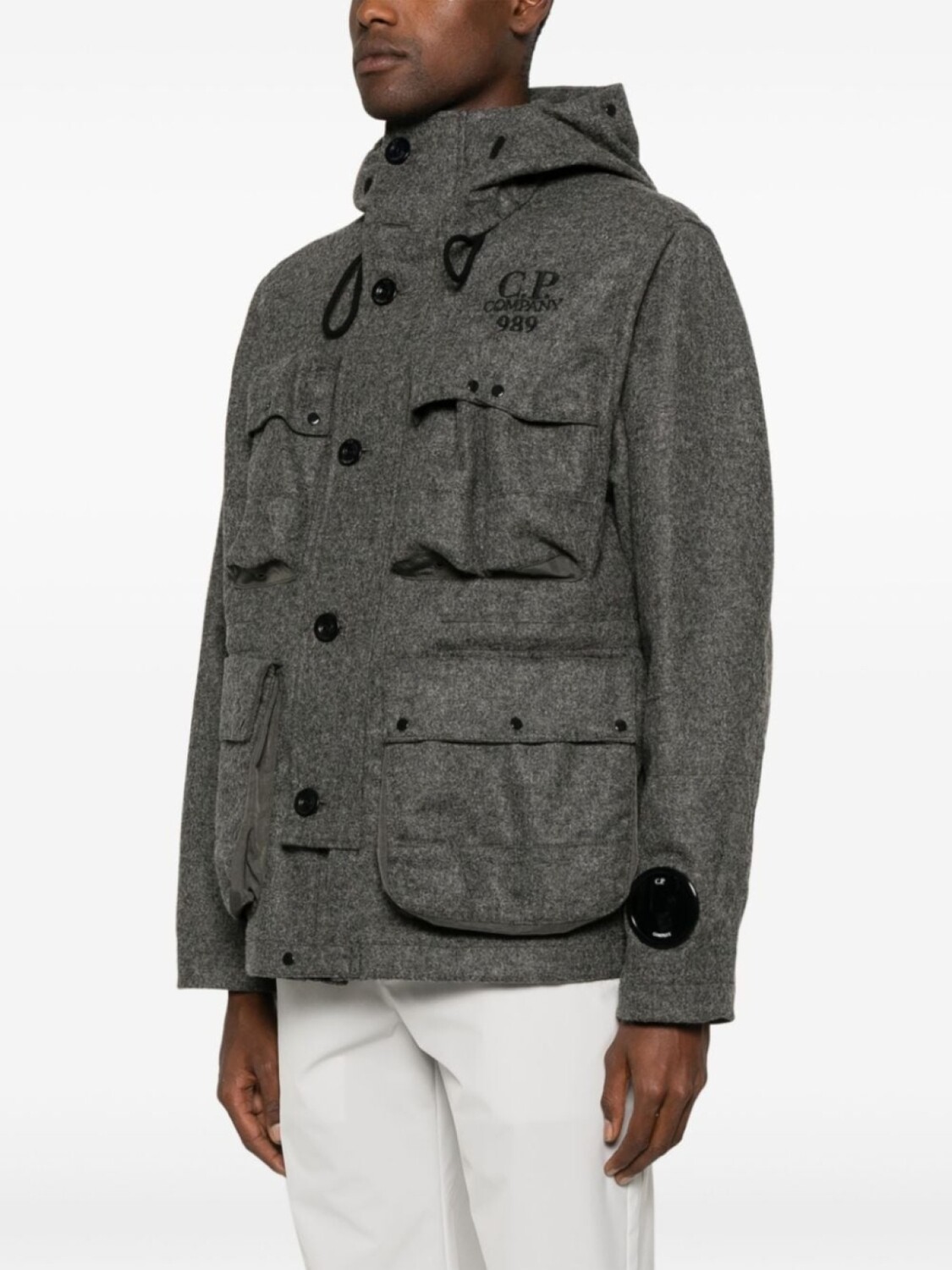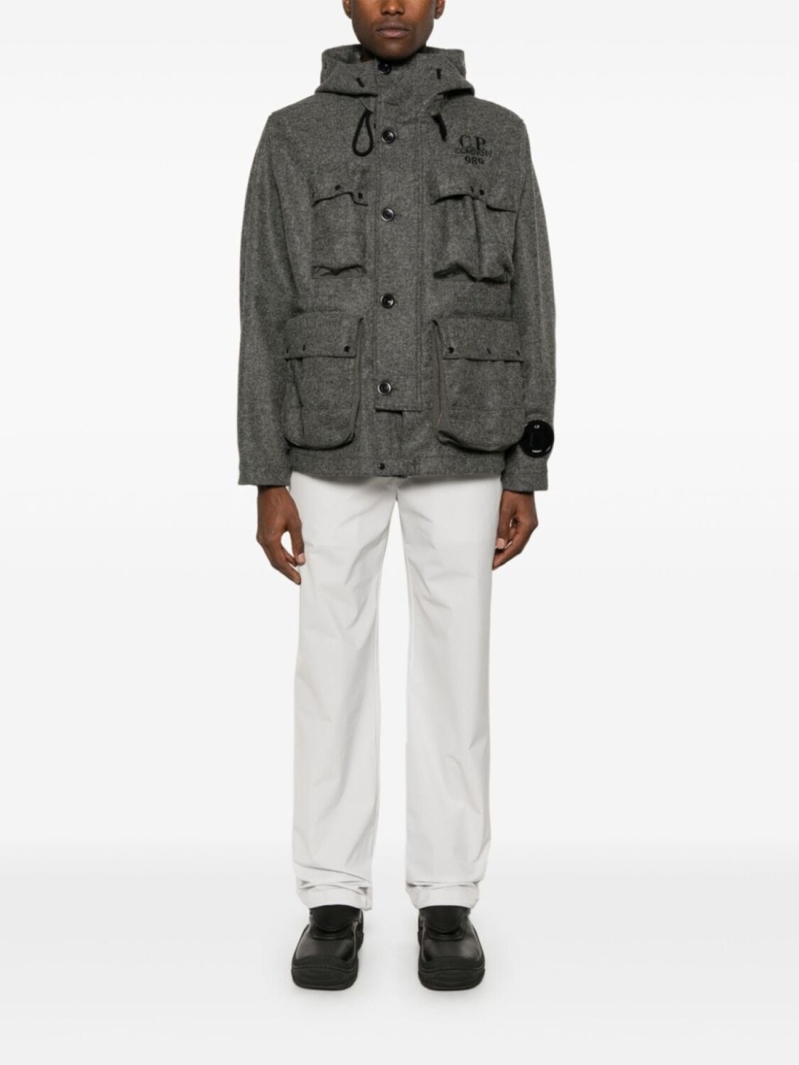 Подробнее о товаре: • антрацитово-серый • шерсть • эффект меланж • фетровый материал • застежка на молнии и пуговице спереди • декоративные линзы • капюшон с кулиской • длинные рукава • декоративная линза • вышитый логотип спереди • четыре накладных кармана спереди • цельная подкладка • прямой подол • C.P. Company рекомендуют снимать все отстегивающиеся аксессуары перед стиркой.