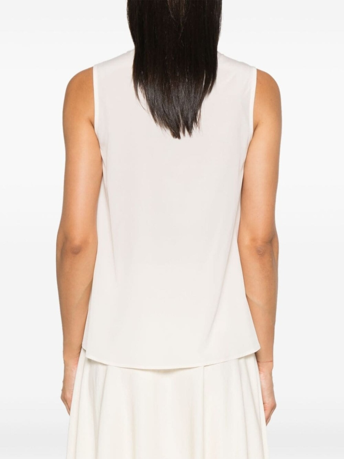 Оттенок слоновой кости, смесовый шелк, сатиновая фактура, цепочка Punto Luce, застежка на пуговицу сзади, круглый вырез, без рукавов, закругленный подол