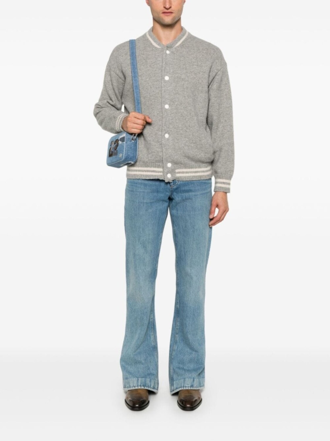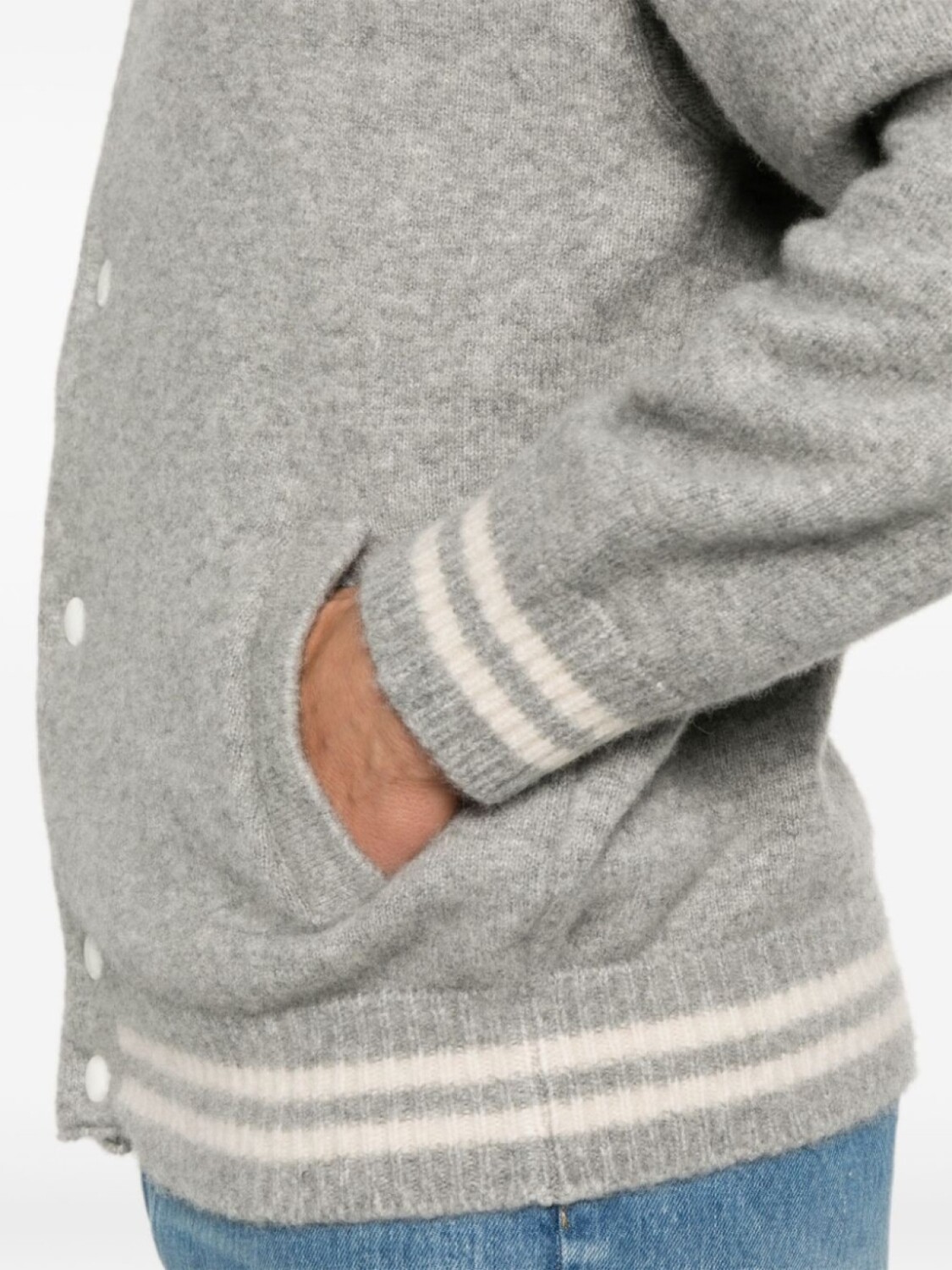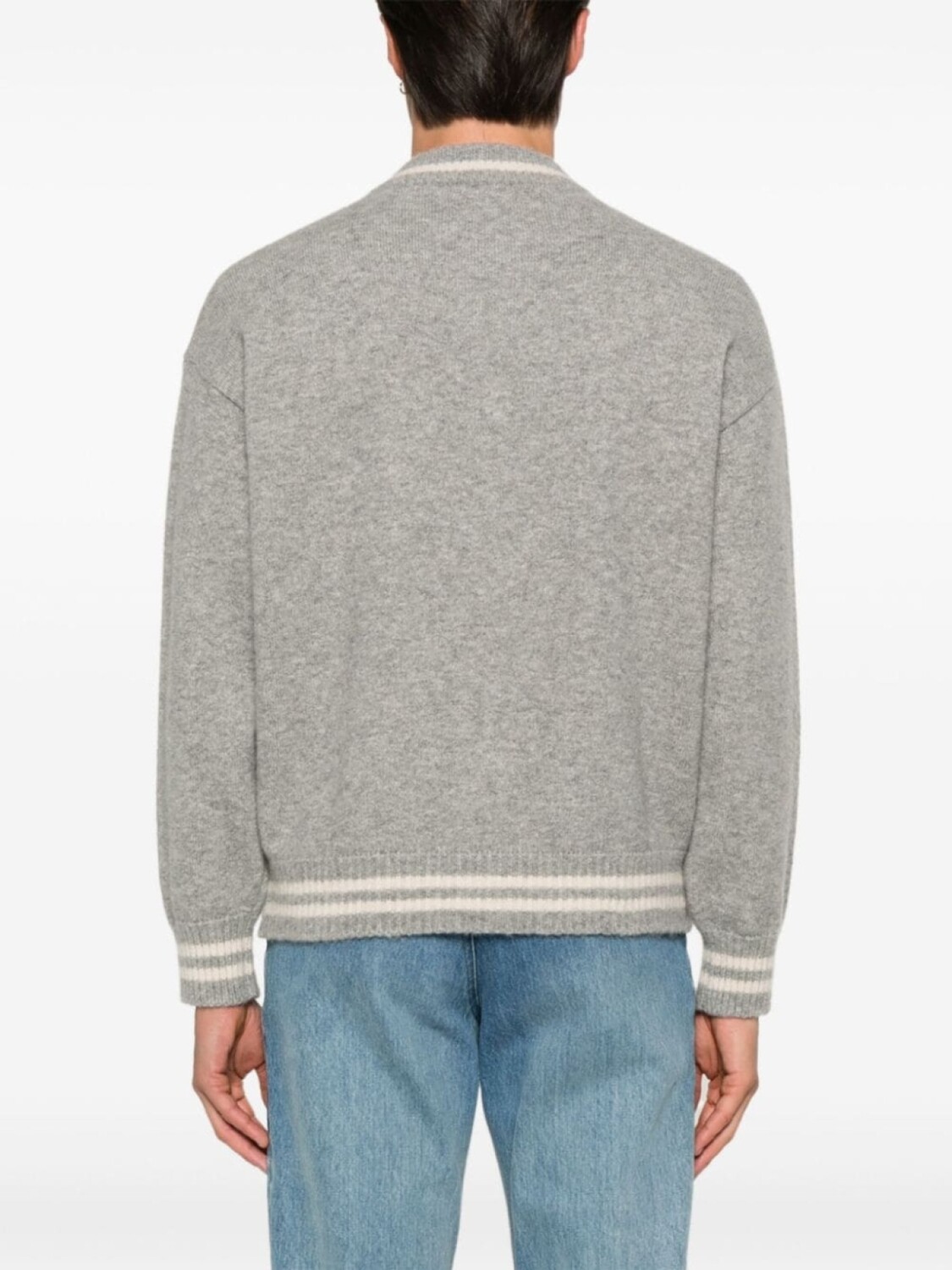 Подробнее о товаре: • серый • смесовый кашемир • вязаный дизайн • эффект меланж • застежка на кнопках спереди • полосатые края • бейсбольный воротник • два передних кармана с листочкой • приспущенные плечи • длинные рукава • подол и манжеты в рубчик • модель без подкладки • Это унисекс-модель. Обратите внимание, что для нее используется мужская размерная сетка.
