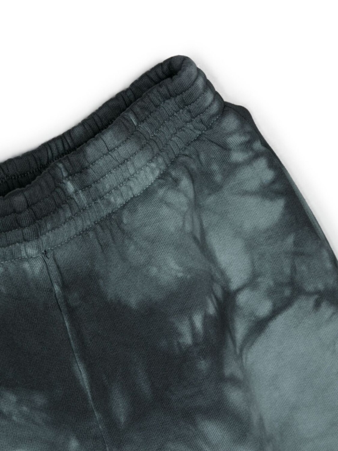 Серый, хлопок, ткань джерси, принт тай-дай, декоративная строчка, нашивка с логотипом сбоку, эластичный пояс, широкий крой, необработанный подол, боковые разрезы и два вшитых кармана по бокам.