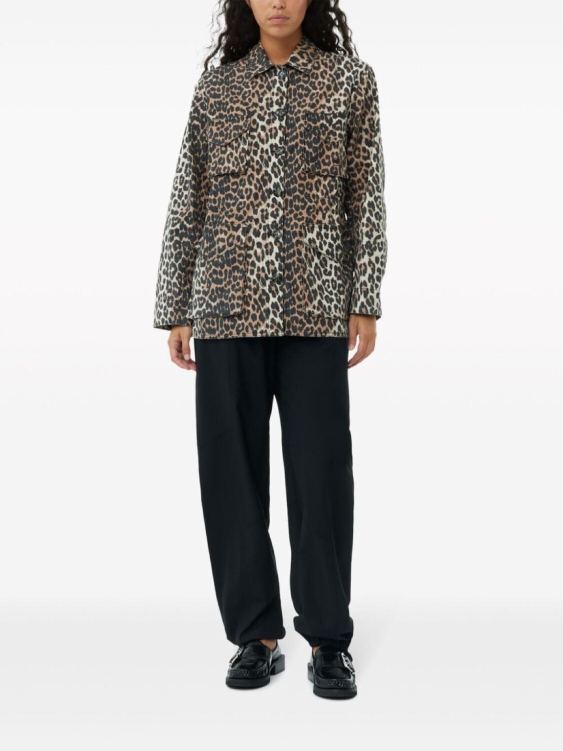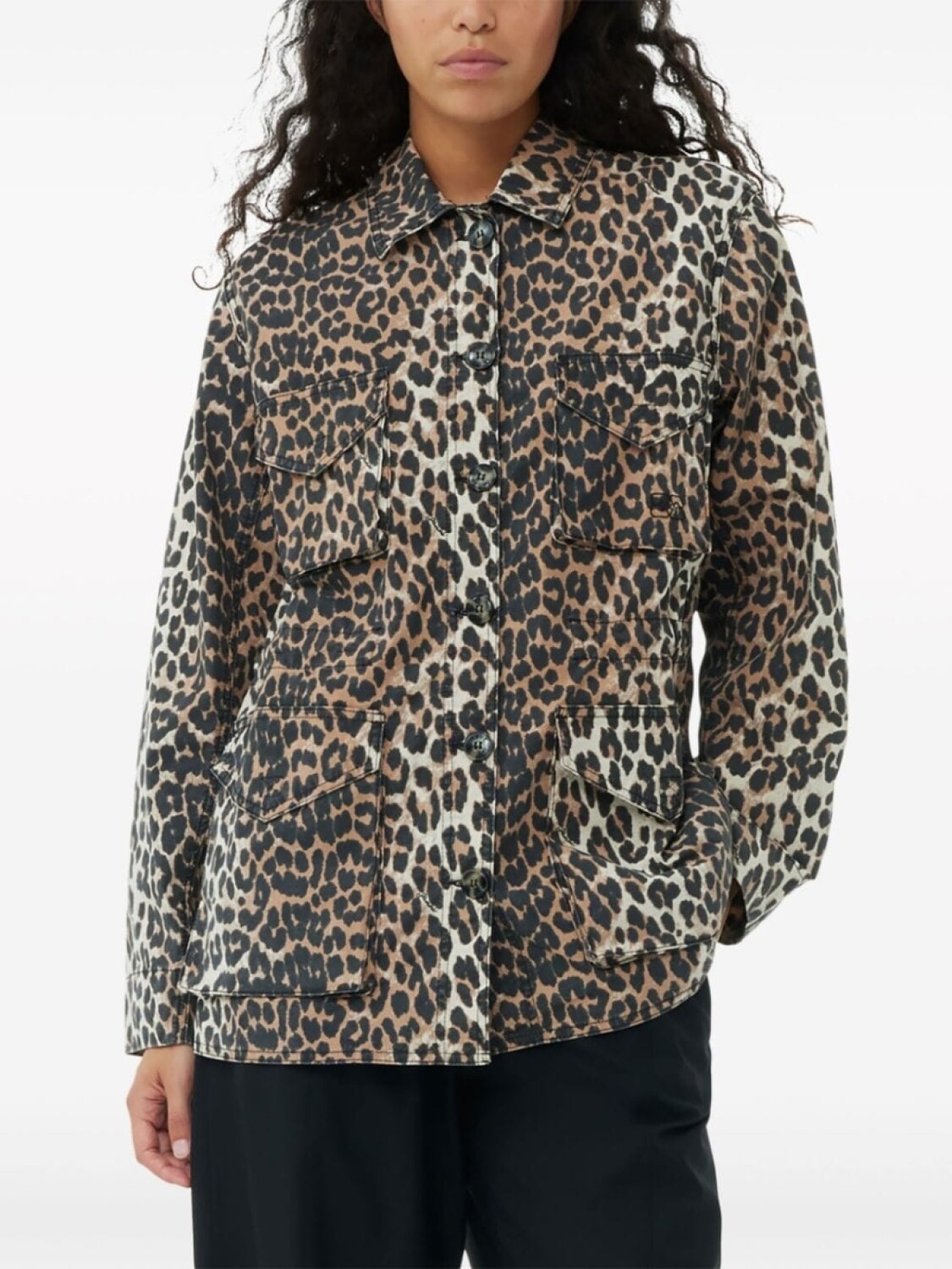 GANNI куртка-рубашка с леопардовым принтом, коричневый