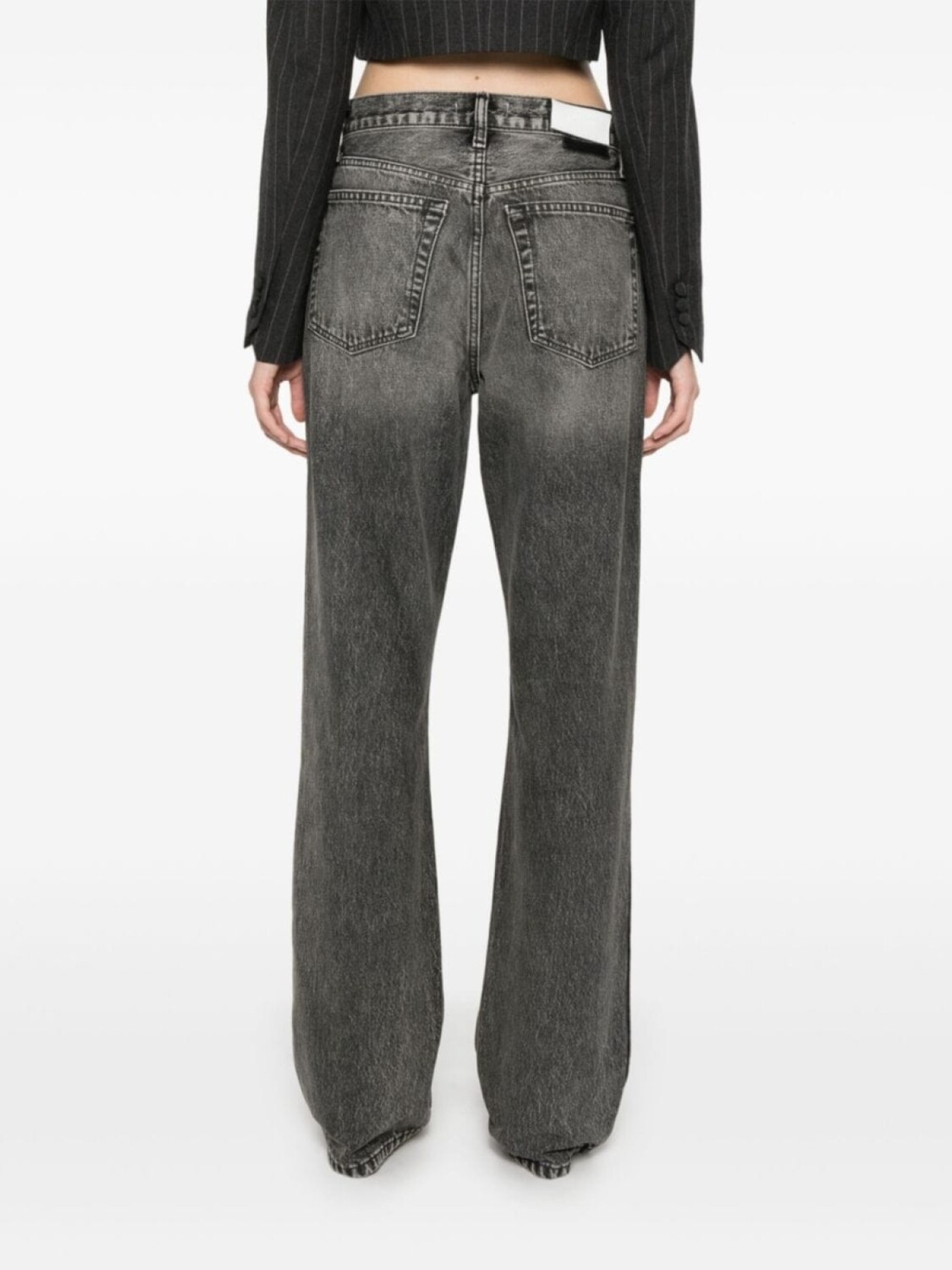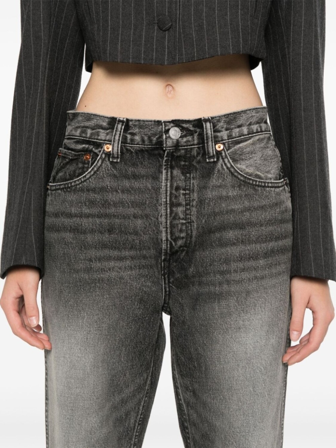 Черный, хлопок, обработанный деним, застежка на молнии и пуговице спереди, завышенная талия, петли для ремня, классическая пятикарманная модель, нашивка с логотипом сзади, прямой крой