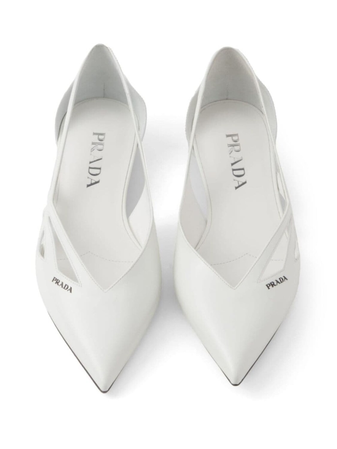 Кожаные балетки Prada с вырезами, белый 130 517₽