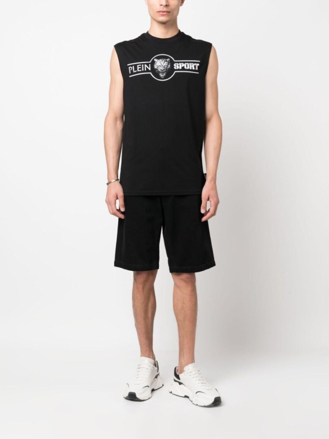 Черный/белый, хлопок, логотип спереди, нашивка с логотипом сзади, круглый вырез, без рукавов и прямой подол.