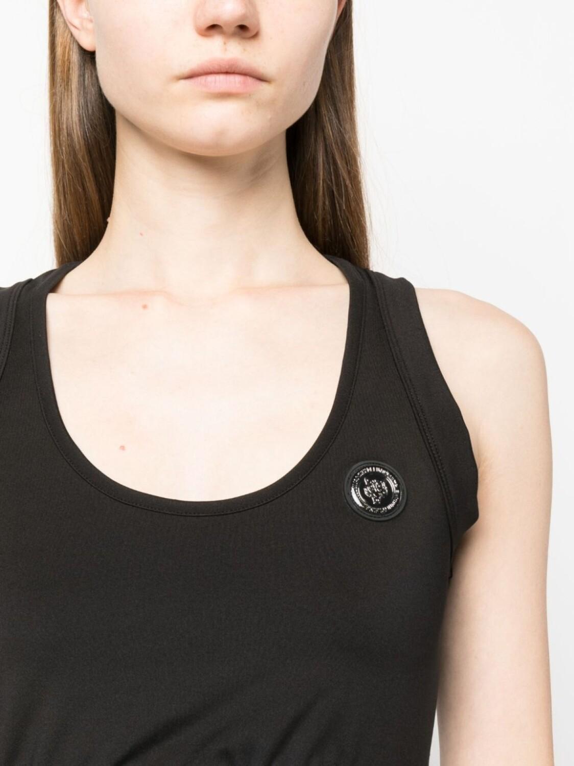 Черный, хлопок, логотип в тон, пояс с логотипом, открытая спина, U-образный вырез, без рукавов и эластичный подол.
