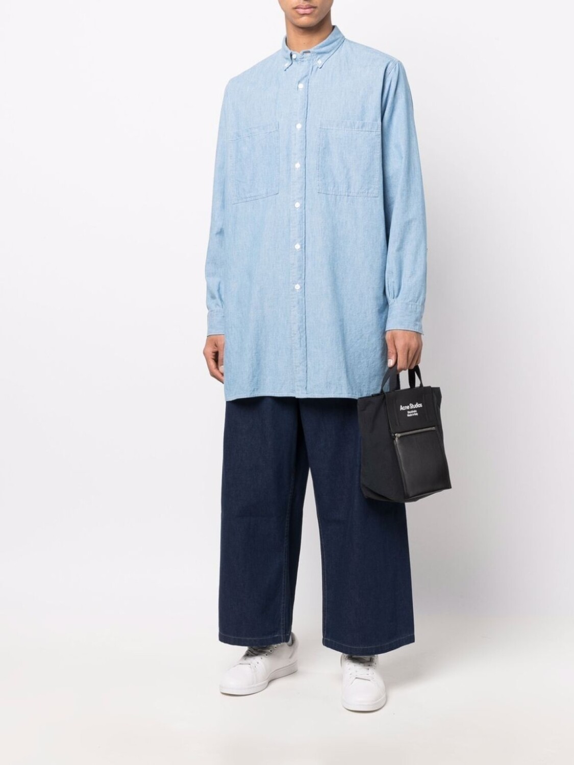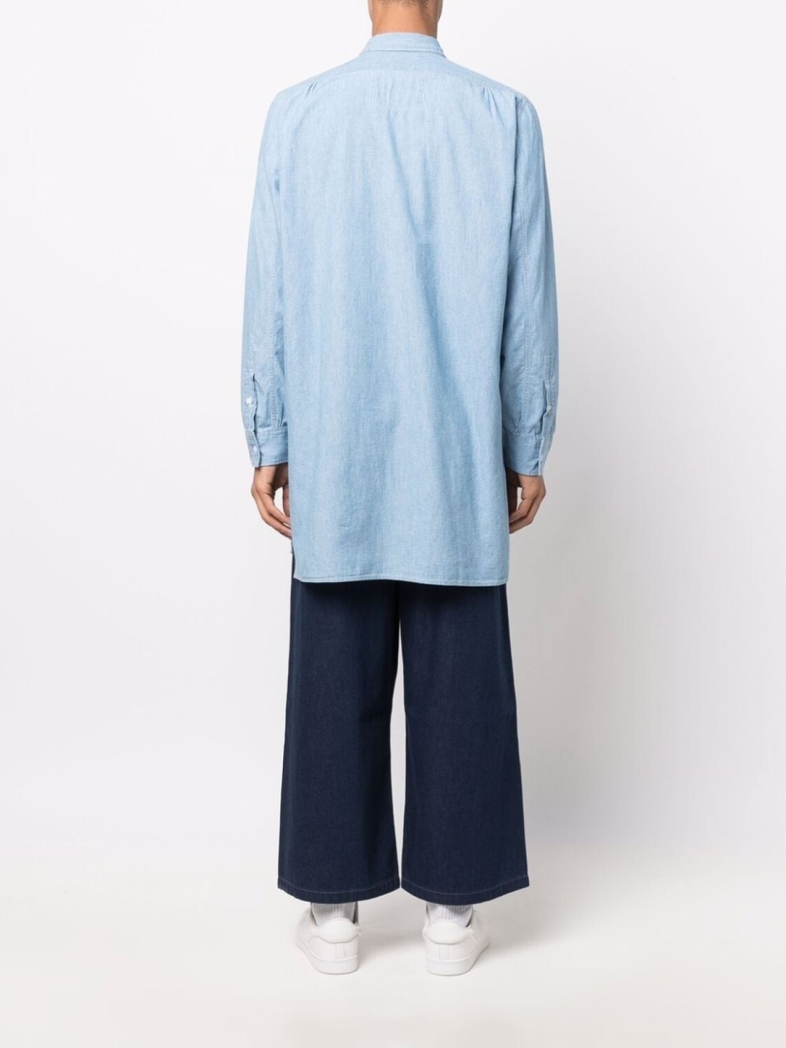 Воротник на пуговицах, нагрудный накладной карман, длинные рукава, манжеты на пуговицах и застежка на пуговицах спереди.