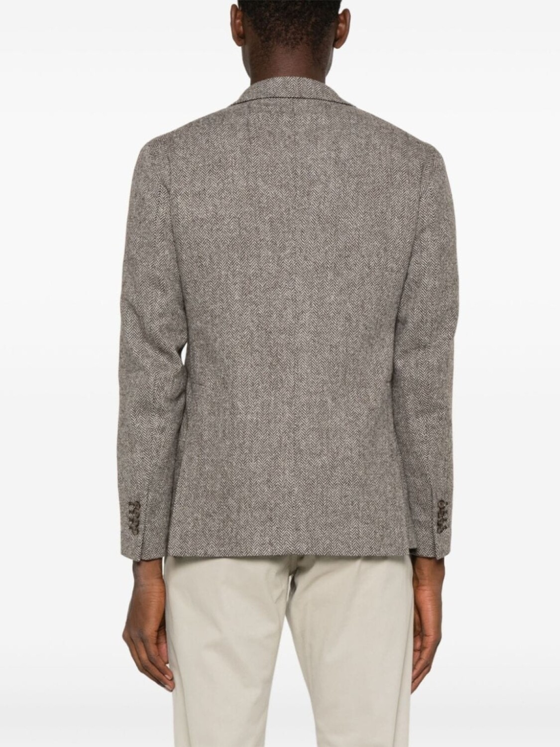 Подробнее о товаре: • шоколадно-коричневый/светло-бежевый • вирджинская шерсть • принт в елочку • застежка на пуговицах спереди • зазубренные лацканы • декоративная брошь • длинные рукава • рукава с манжетами на пуговицах • прорезной карман на груди • два накладных кармана по бокам • две боковые шлицы сзади • внутренние прорезные карманы • частичная подкладка • прямой подол