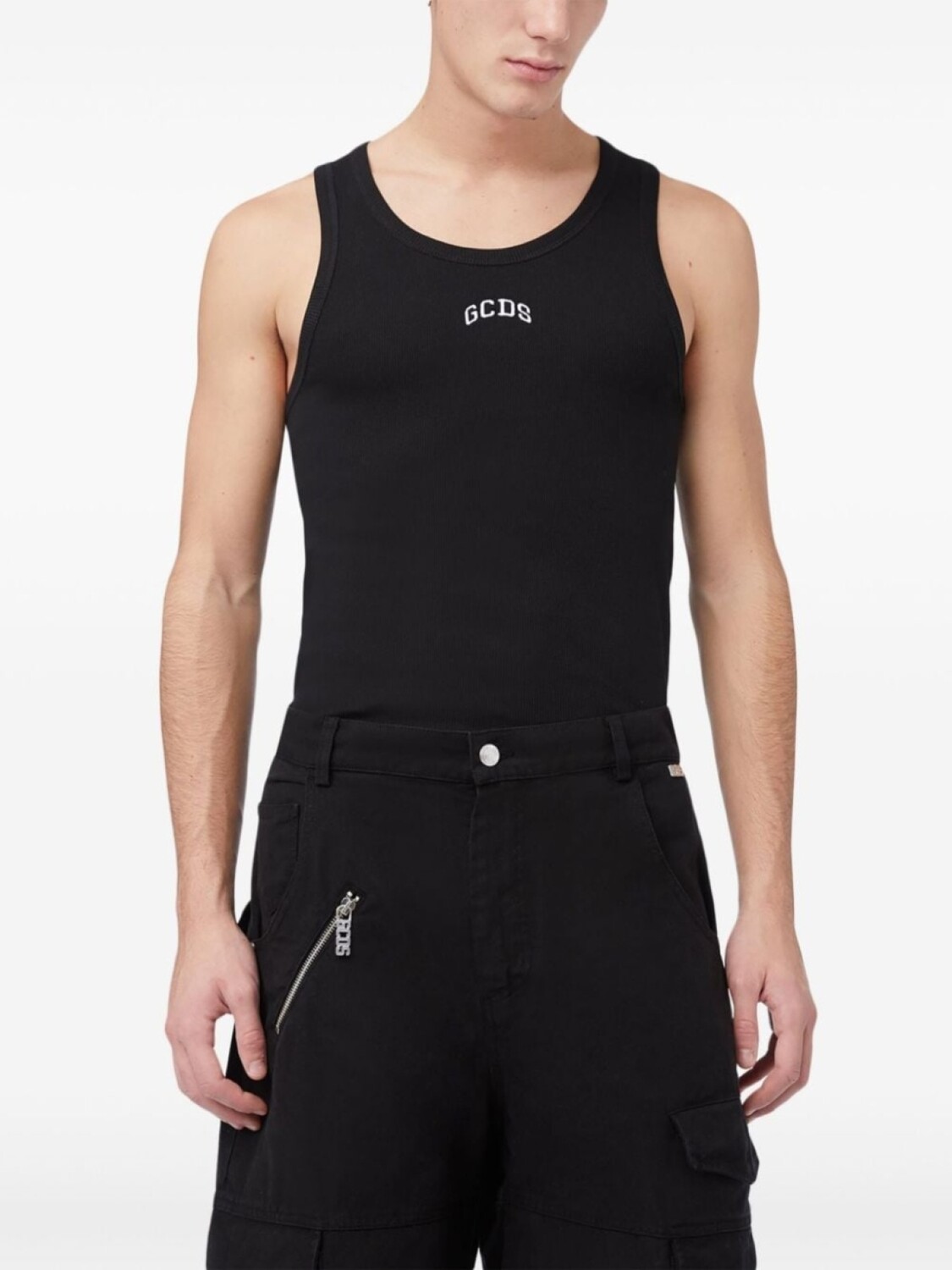 Черный, эластичный хлопок, логотип спереди, U-образный вырез, без рукавов, прямой подол