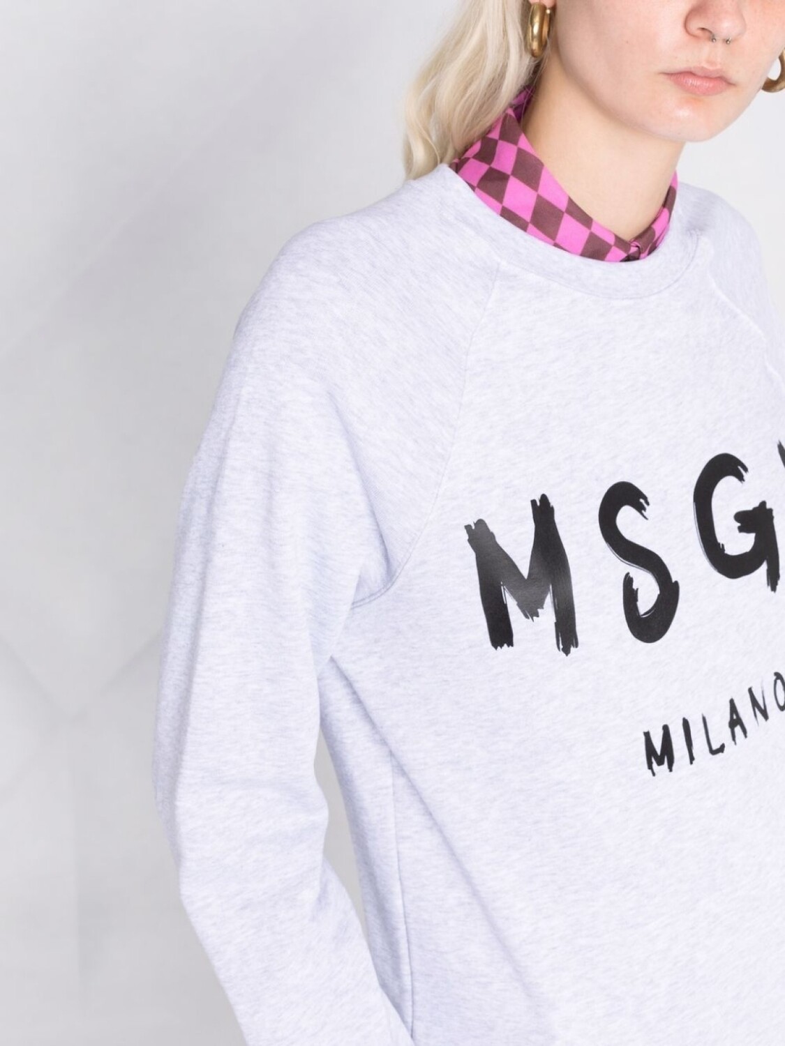 Логотип спереди, круглый вырез, длинные рукава реглан и прямой подол.