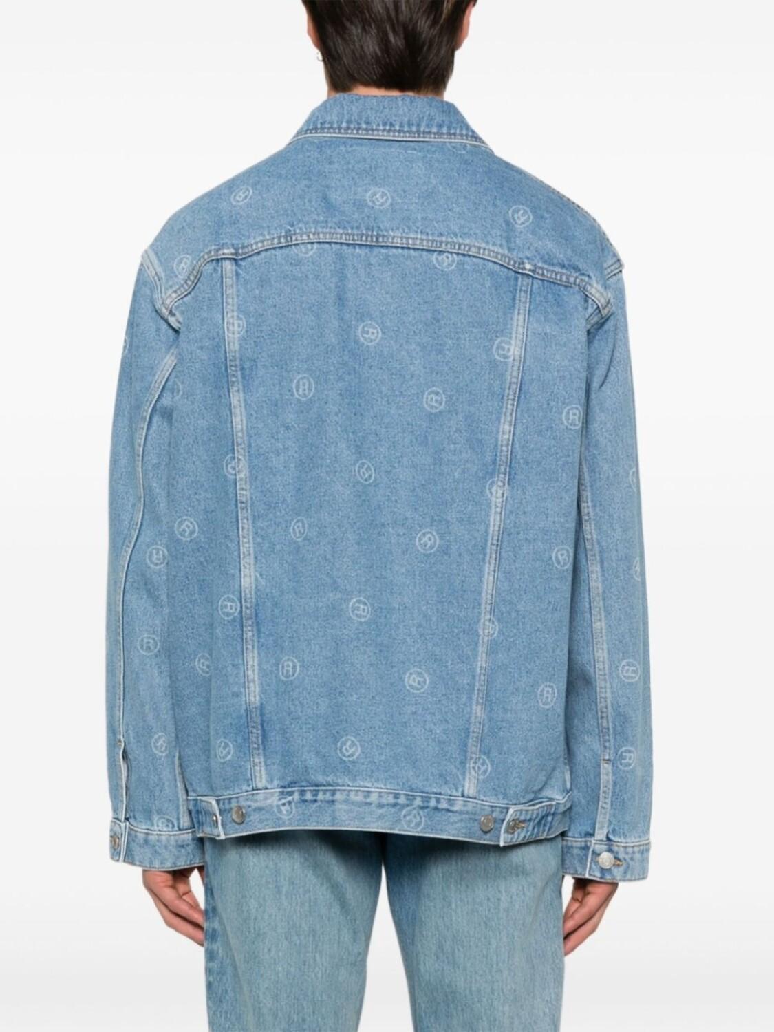 Пастельно-синий, хлопок, обработанный деним, застежка на пуговицах спереди, классический воротник, сплошной принт с логотипом, приспущенные плечи, длинные рукава, манжеты на пуговицах, нашивка с логотипом на груди, два нагрудных кармана на пуговицах, два прорезных кармана сбоку, ремешки на пуговицах, прямой подол, Это унисекс-модель. Обратите внимание, что для нее используется мужская размерная сетка.